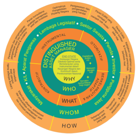 Lebih lanjut Prinsip-prinsip distinguished asset manager tersebut dijabarkan ke dalam beberapa Tujuan, Sasaran Strategis, dan Indikator Capaian. Secara umum, Roadmap DJKN Tahun 2019-2028 apabila di-break down maka diketahui memiliki 1 end state, 3 pilar, 4 prinsip, 15 tujuan, 71 sasaran strategis, dan 376 indikator capaian/program.