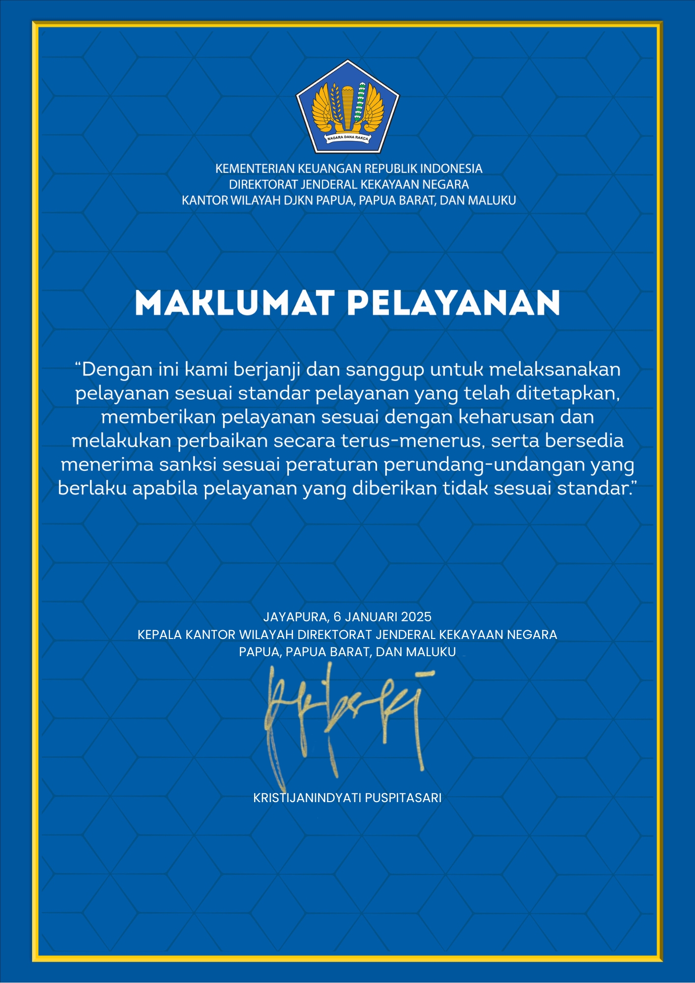 Maklumat Pelayanan Kantor Wilayah DJKN Papua, Papua Barat, dan Maluku