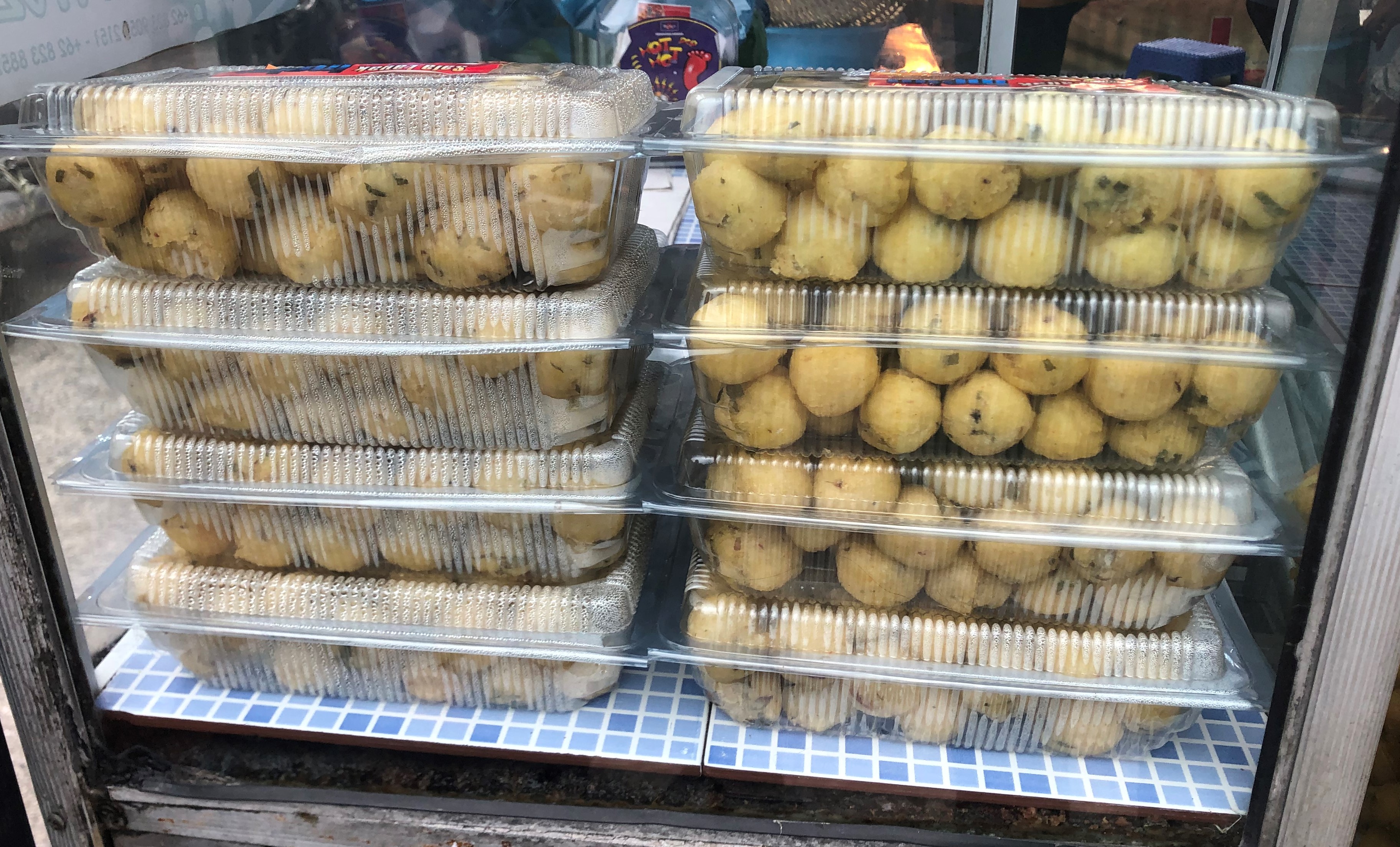 sejenis gorengan rasa ikan berbentuk bulat yang garing diluar dan lembut