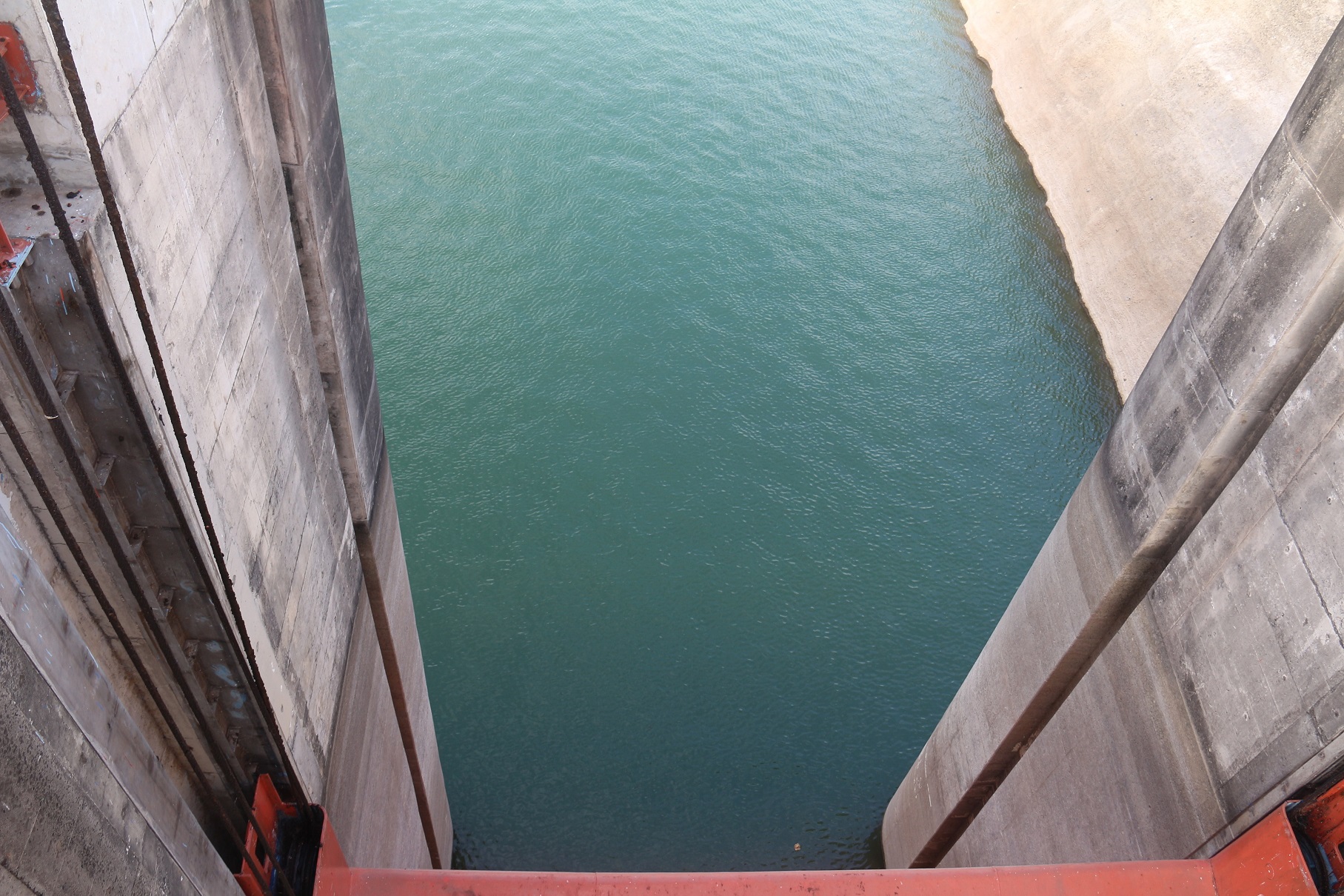perbedaan tinggi mencapai 51,5 meter dan ukuran pintu bendungan 3,7 x 5,2