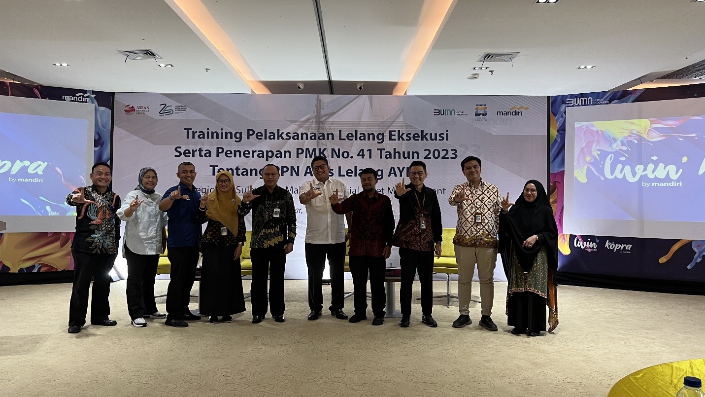 Makassar – Kanwil DJKN Sulseltrabar dan KPKNL Makassar menghadiri acara pelatihan pelaksanaan lelang eksekusi yang diinisiasi oleh Bank Mandiri di Kota Makassar pada Rabu (14/06). Pelatihan tersebut diikuti oleh pegawai Regional Retail Collection & Recovery X/Sulawesi & Maluku, Special Asset Management Group dan Regional Credit Operation Bank Mandiri.