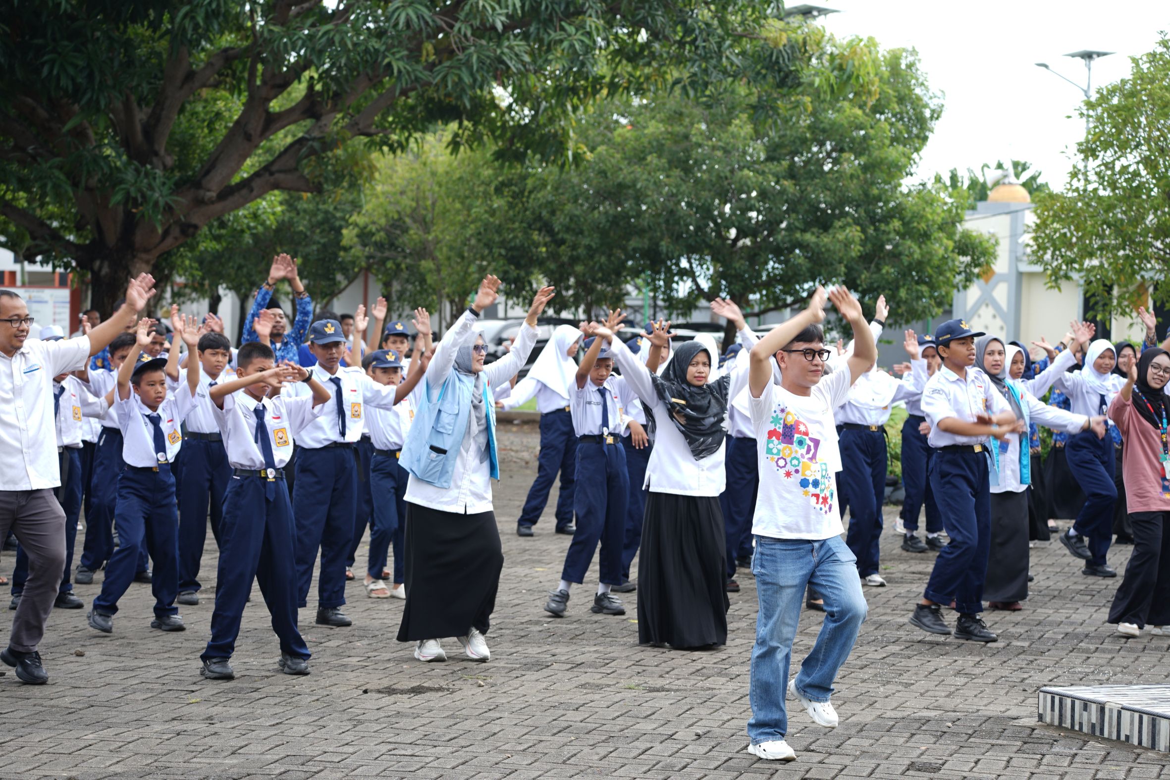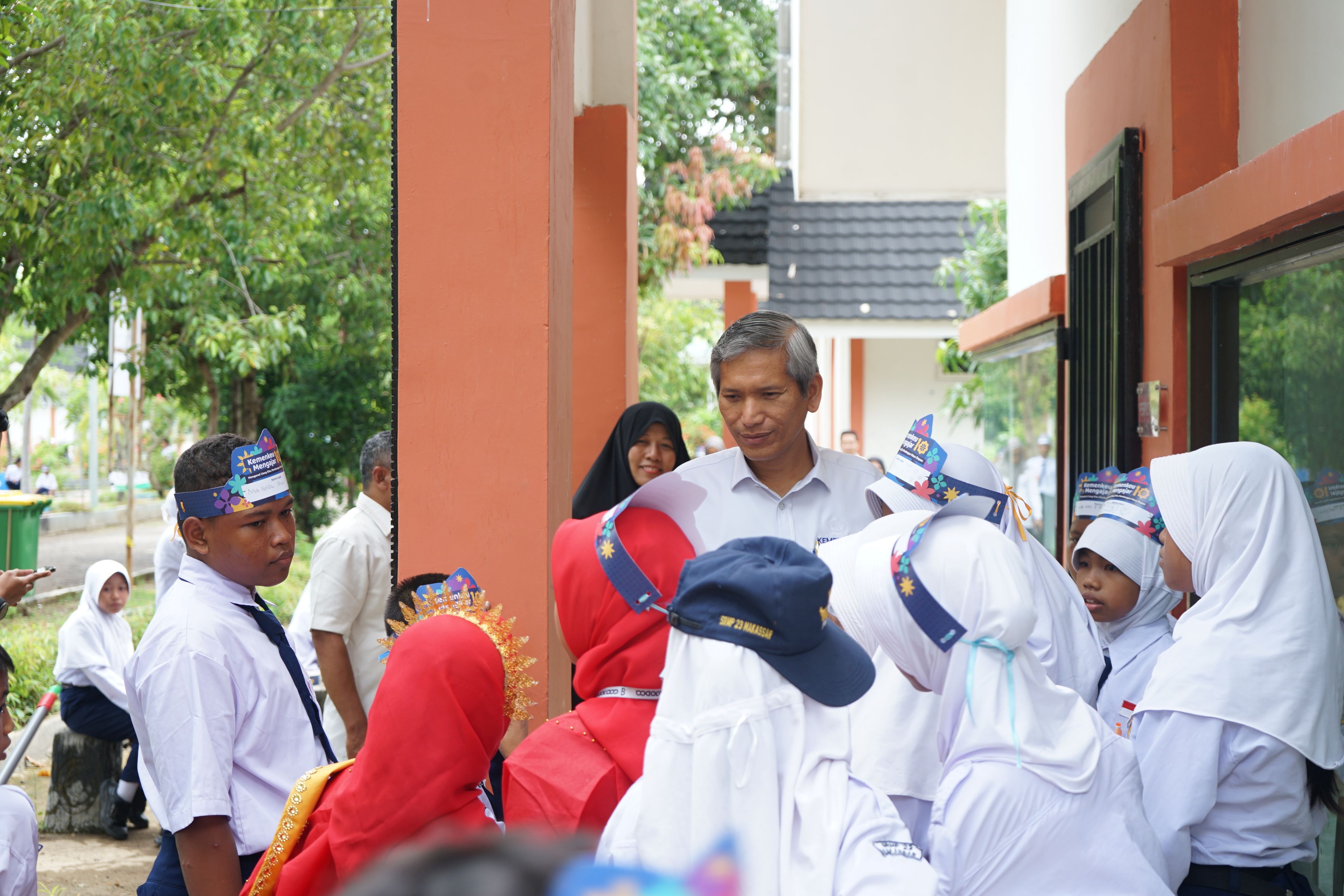dan para siswa dan guru serta perangkat SRMP 23 Makassar, Wibawa Pram