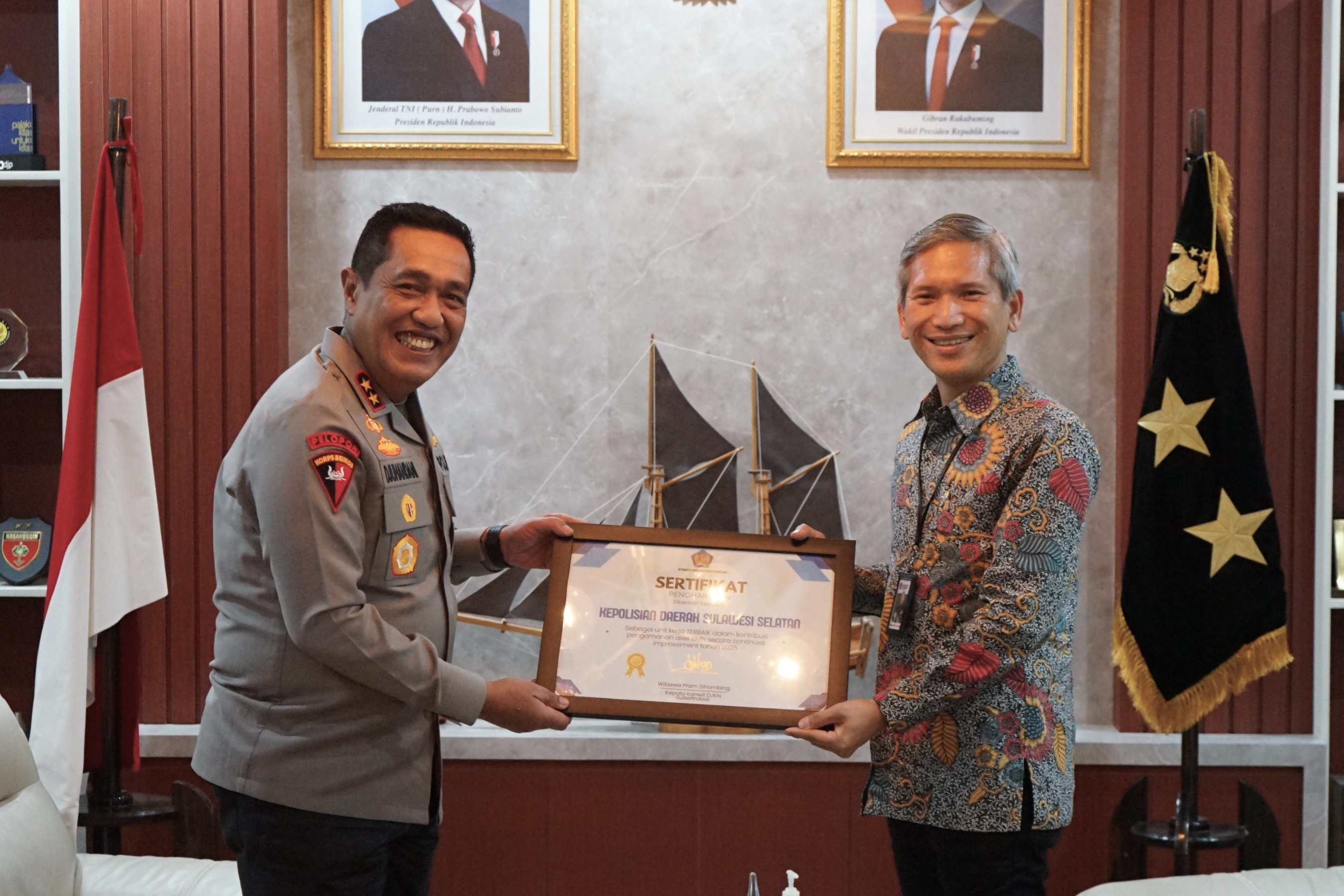 apresiasi kepada Polda Sulsel atas kontribusinya dalam pengamanan aset negara,