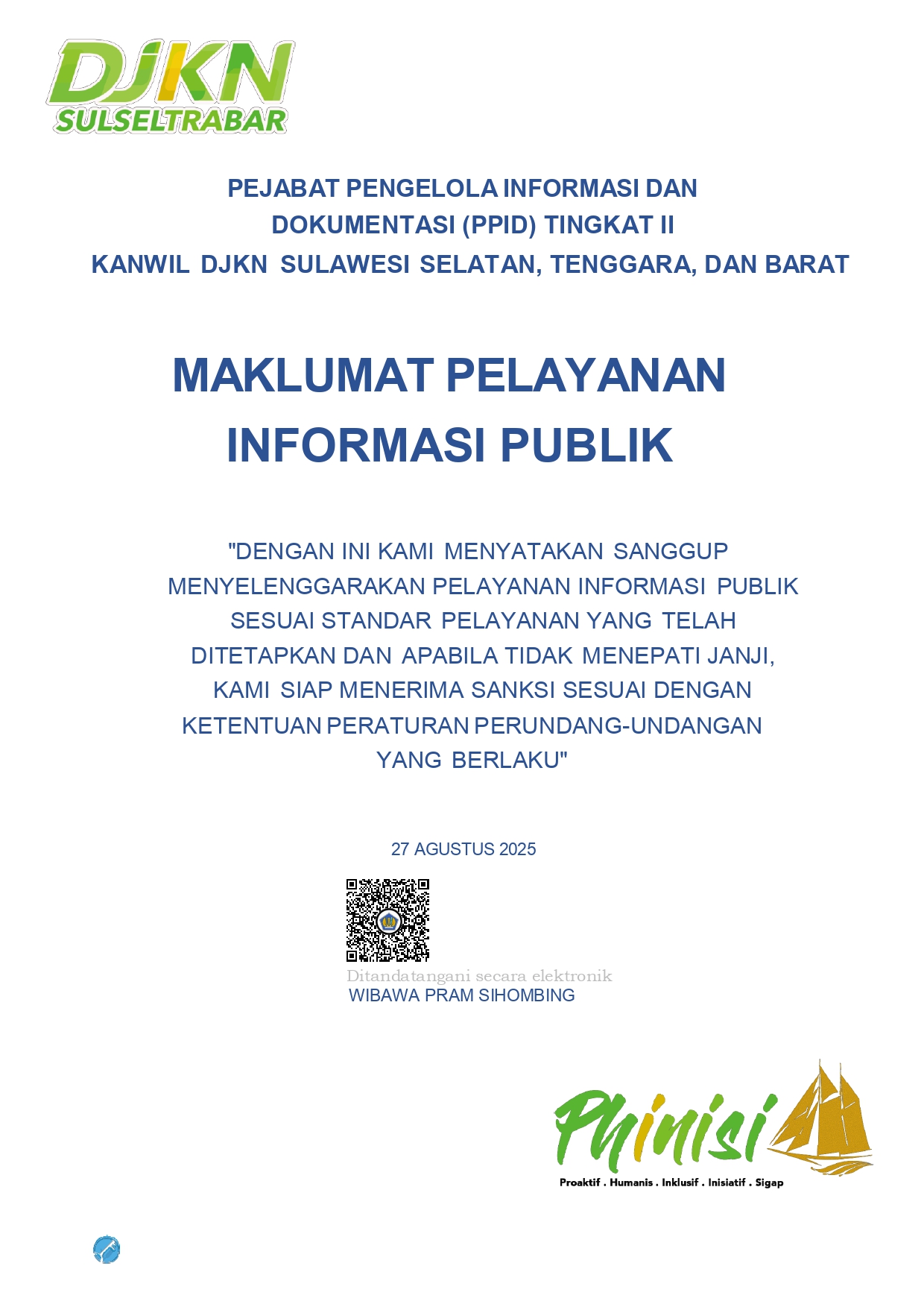 Maklumat Pelayanan Informasi Publik Kanwil DJKN Sulseltrabar