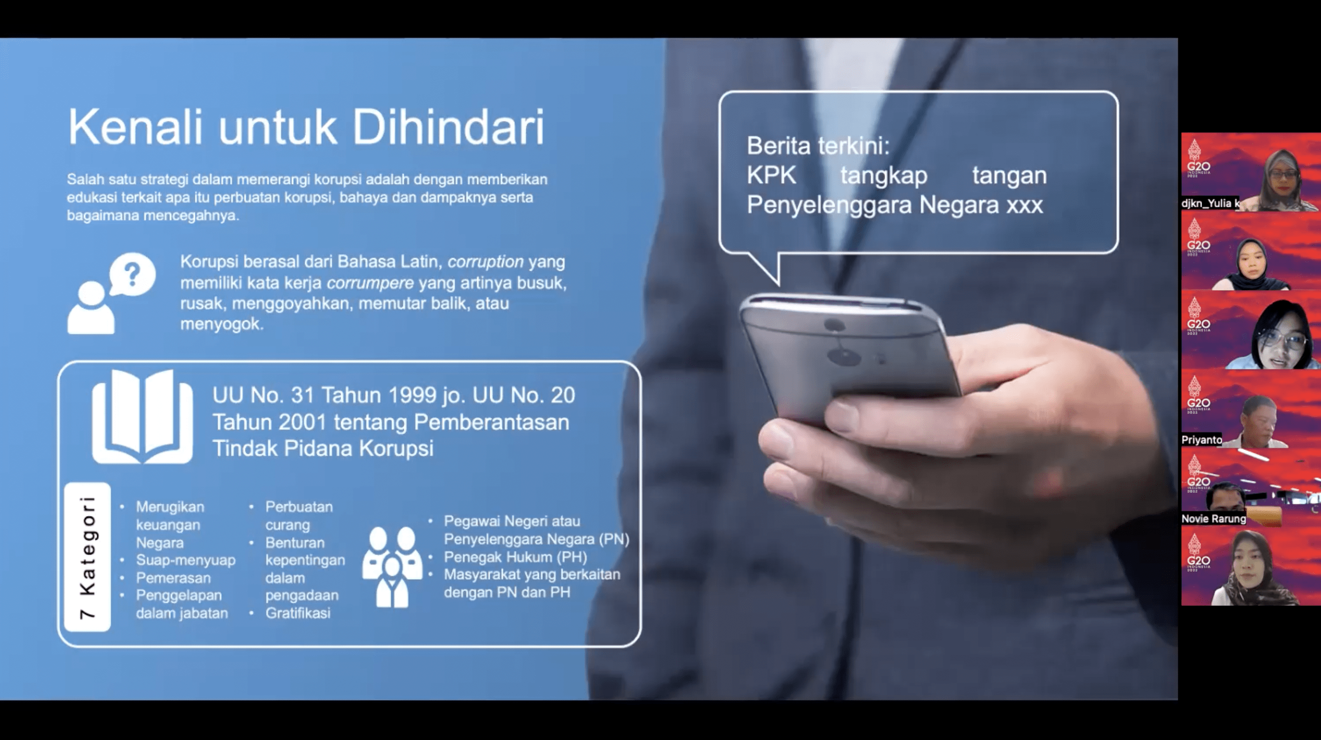 “9 nilai antikorupsi tersebut harus selalu kita implementasikan, tidak hanya saat bekerja tetapi dalam kehidupan sehari-hari juga,” ujar Jeanetee.