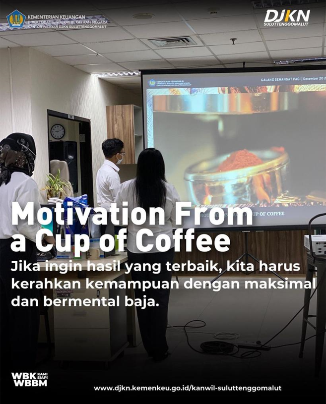 Selain pemberian motivasi, konsisten dengan tema Filosofi Kopi, Bidang Penilaian juga memberikan kuis bagi para pegawai mengenai sejarah kopi. Hal tersebut merupakan bentuk implementasi salah satu budaya kerja Kementerian Keuangan yaitu satu informasi setiap hari.