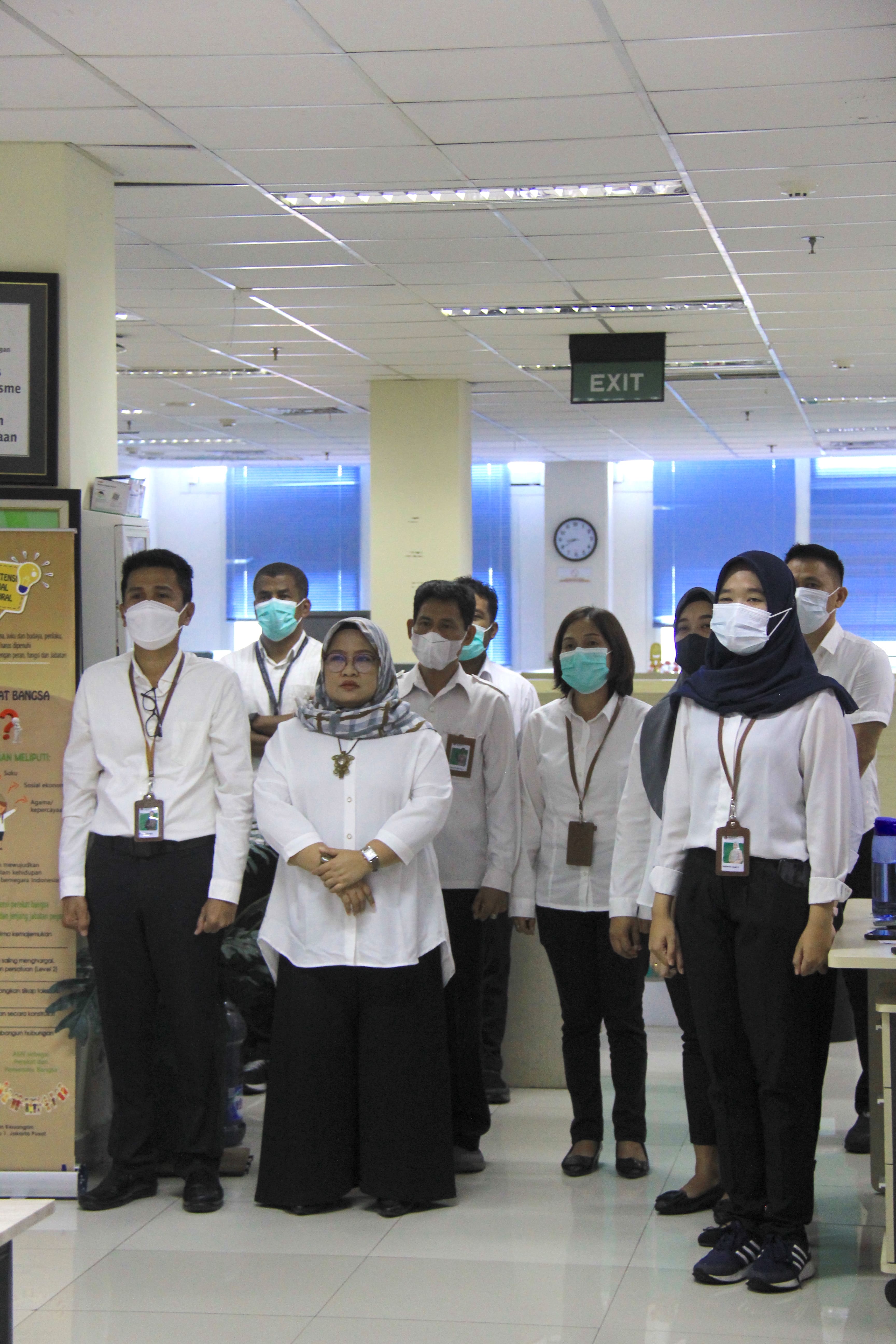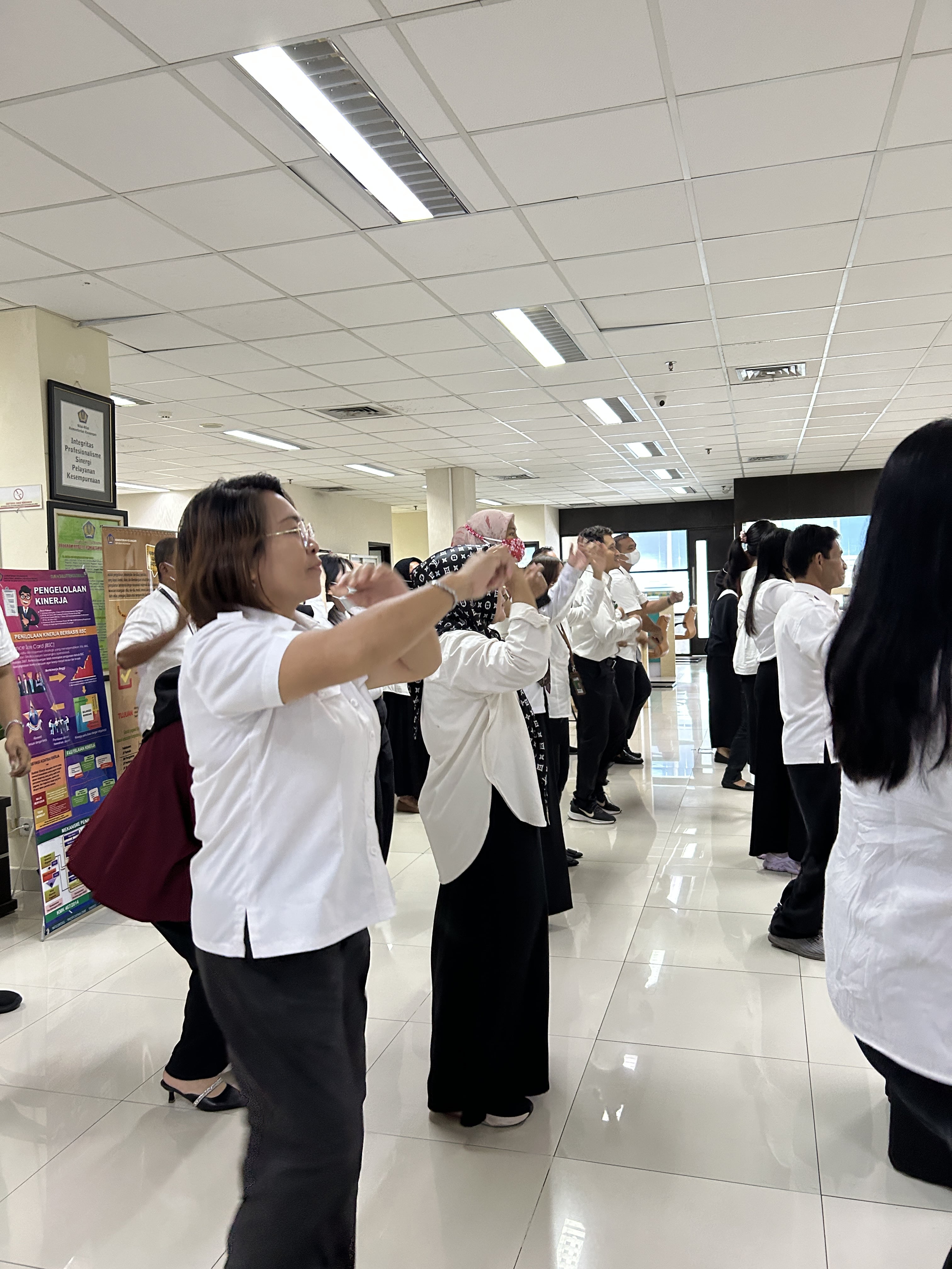 Diakhir kegiatan, Jeanette dan Inayah juga mengajak para pegawai untuk berlatih senam sehat untuk meningkatkan semangat.