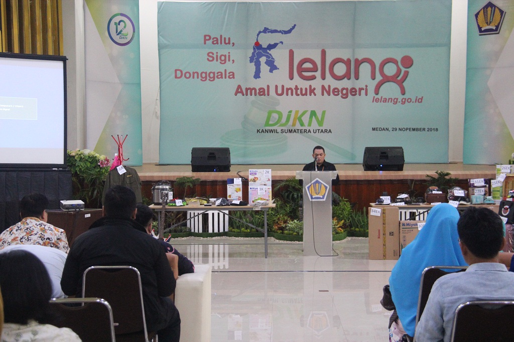 pidatonya Kakanwil DJKN Sumut Mahmudsyah menjelaskan Lelang Amal Sukarela ini