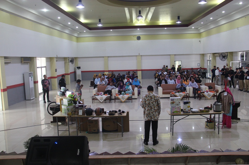 dengan seluruh peserta yang hadir saling berebut mengangkat nomor yang telah