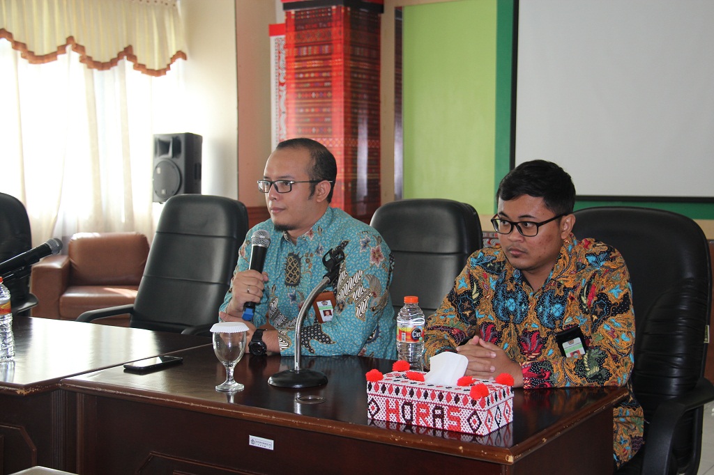 memberikan ucapan selamat datang kepada Ryan dan Fuad staff Pelaksana