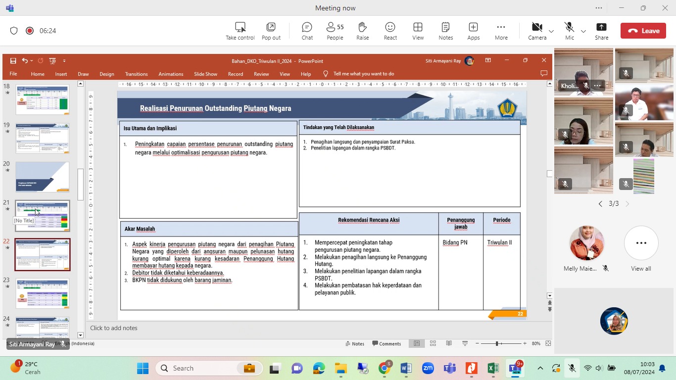 capaian kinerja selama triwulan II serta isu strategis berkaitan dengan