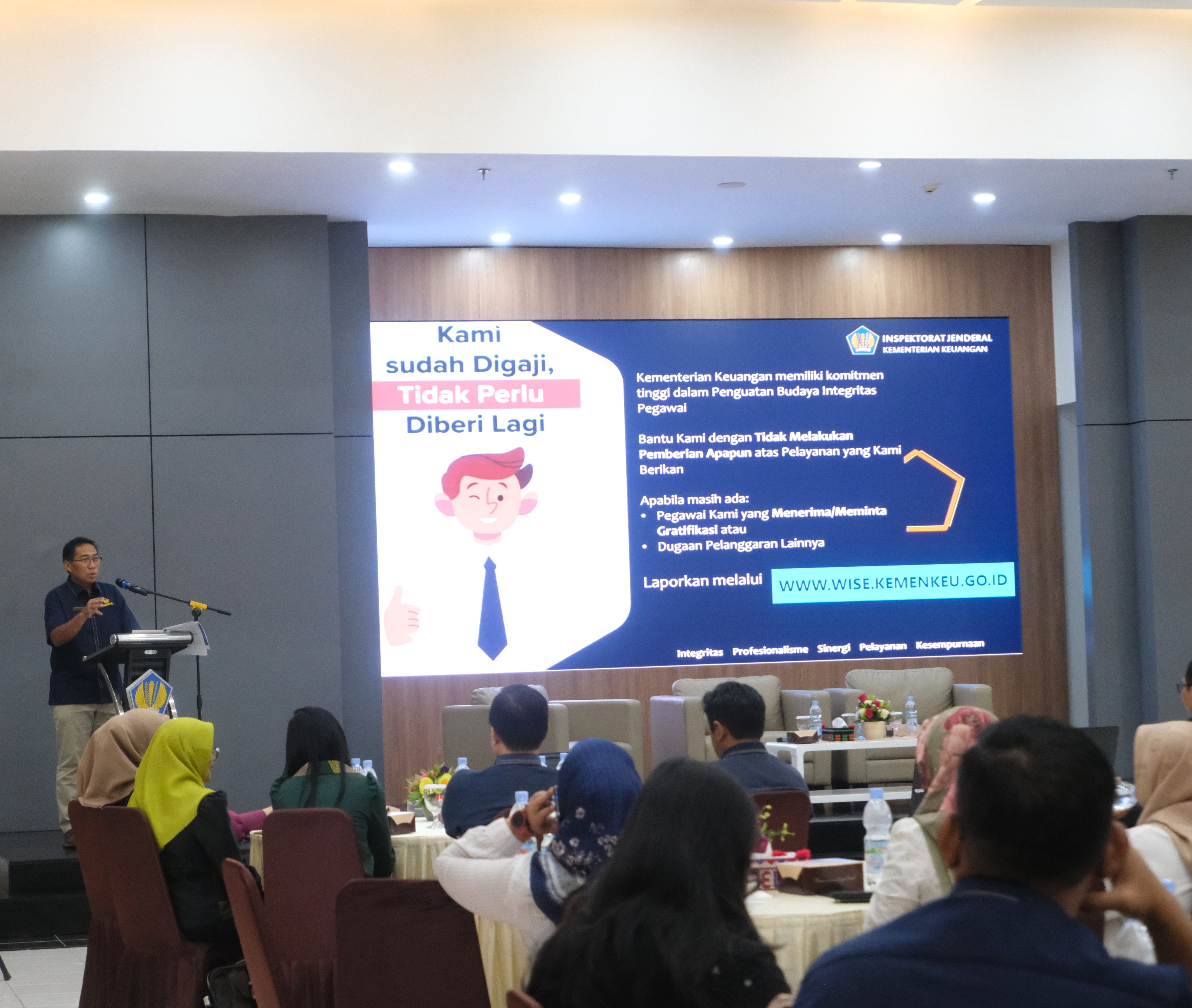 pemaparan materi oleh narasumber Gandi Yohanes Samuel, Kasi Piutang Negara II