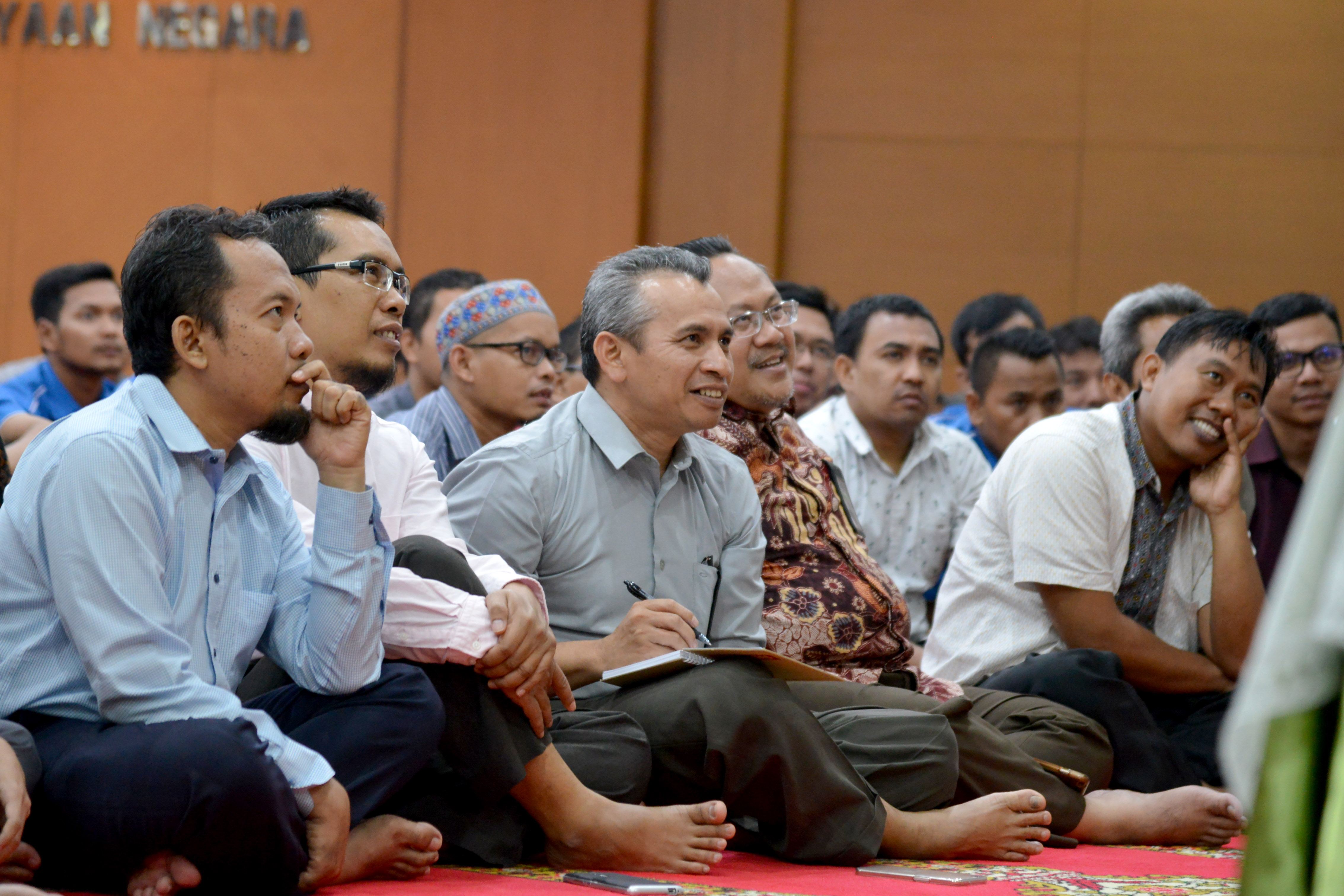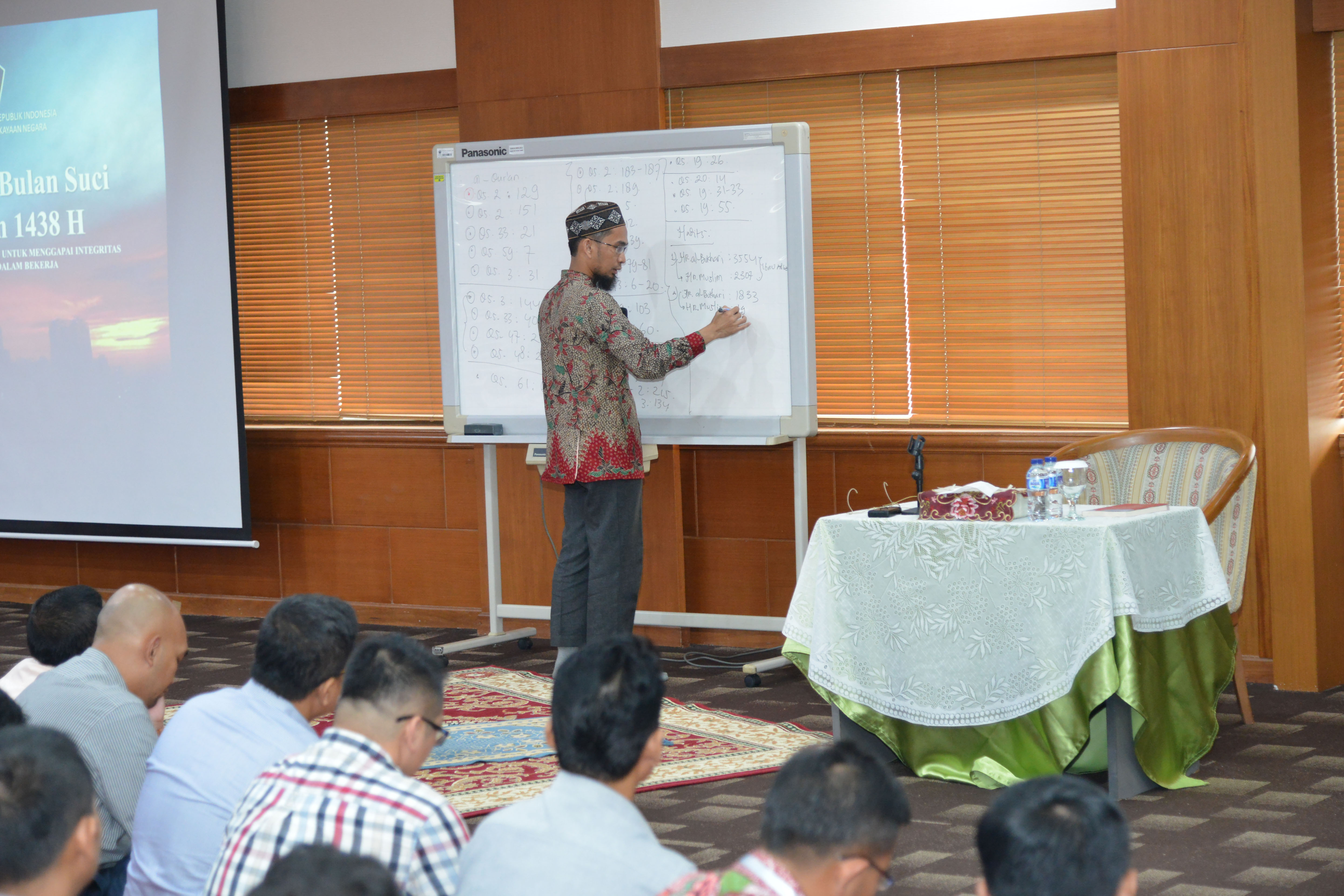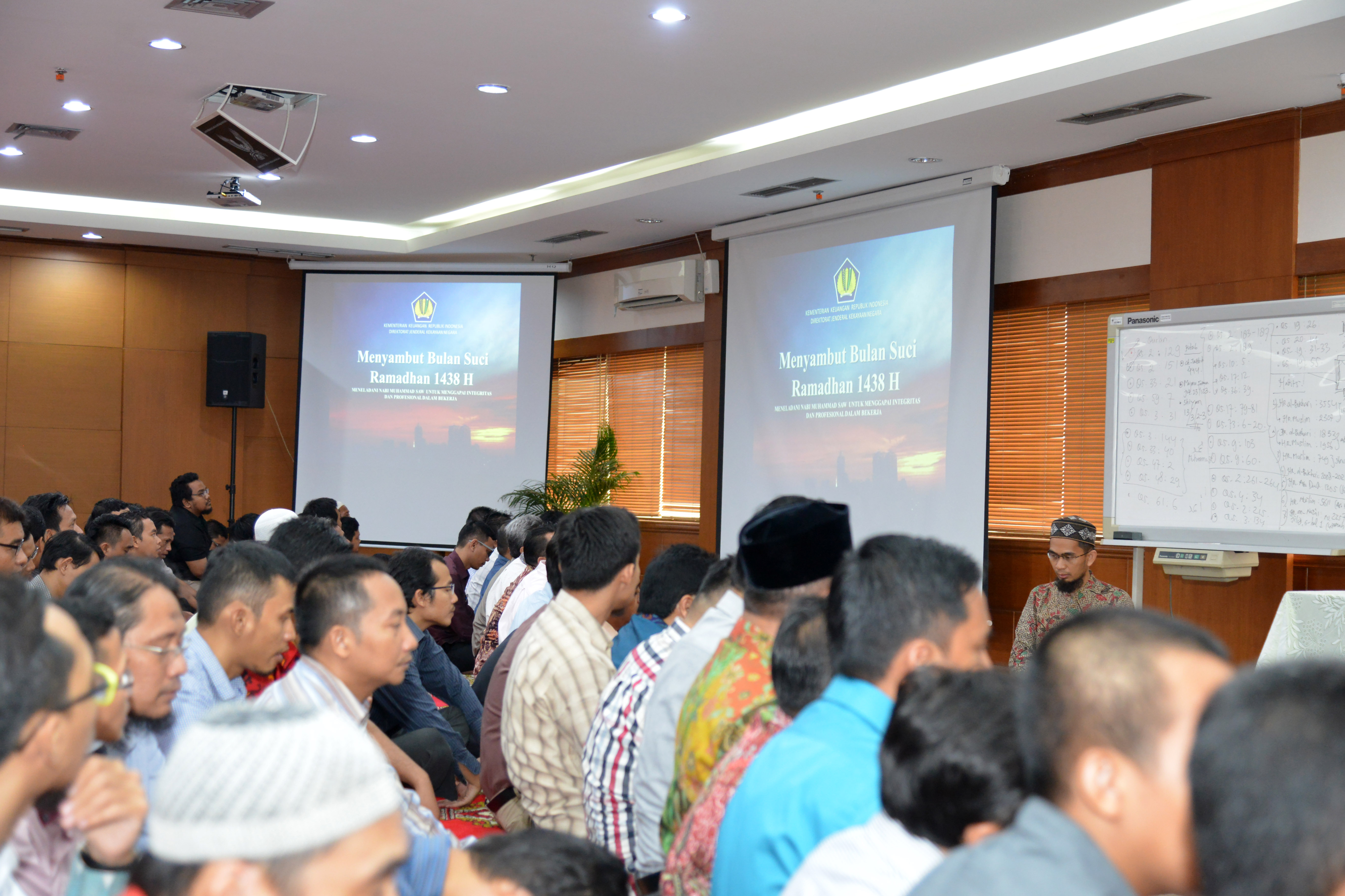 Jakarta – “Jika kita ingin meneladani Nabi Muhammad SAW maka yang harus kita ketahui adalah akhlak dari Nabi Muhammad SAW itu sendiri, dan akhlak dari Beliau itu digambarkan dalam Al-Qur’an”. Itulah pesan awal yang disampaikan oleh Ustadz Adi Hidayat Lc., M.A. dalam kajian yang diselenggarkan oleh Bintal DJKN dalam rangka menyambut bulan suci Ramadhan 1438 H. Acara dengan tema “Meneladani Nabi Muhammad SAW untuk Menggapai Integritas dan Profesional dalam Bekerja” diselenggarakan pada hari Rabu (18/5) di aula lantai 5 kantor pusat DJKN.