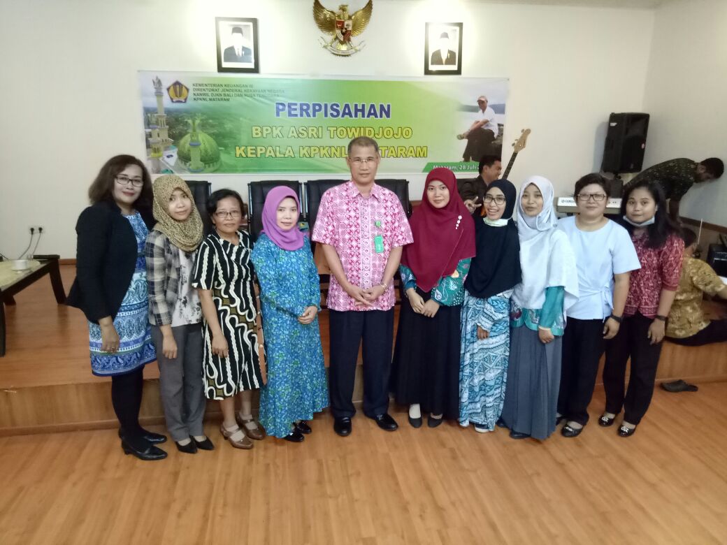 Mataram (28/7) - Sore itu, tepat pukul 15.00 WITA, para pegawai telah memenuhi ruang Aula bersiap untuk acara perpisahan Kepala Kantor Pelayanan Kekayaan Negara dan Lelang (KPKNL) Mataram, Asri Towidjojo. Acara dibuka dengan pembacaan doa agar Asri Towidjojo selalu dilimpahkan berkah, baik dalam mengemban amanah di tempat yang baru maupun dalam kehidupannya.