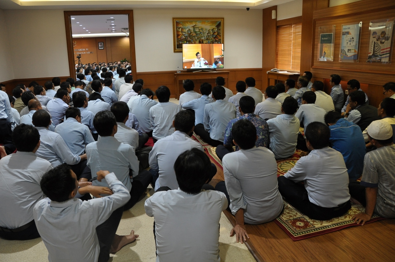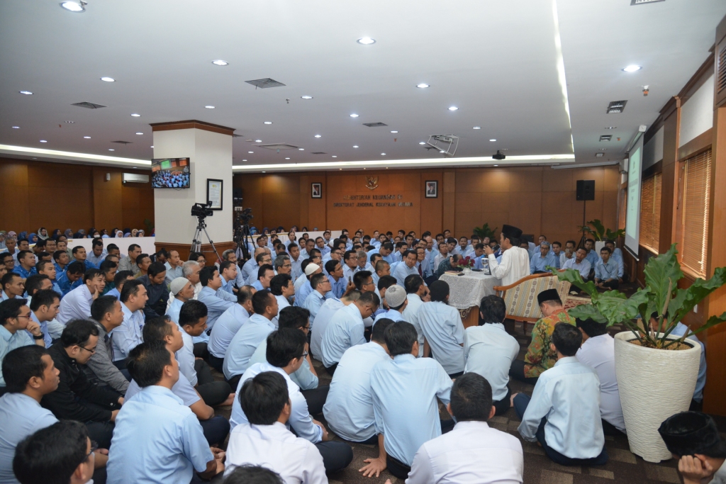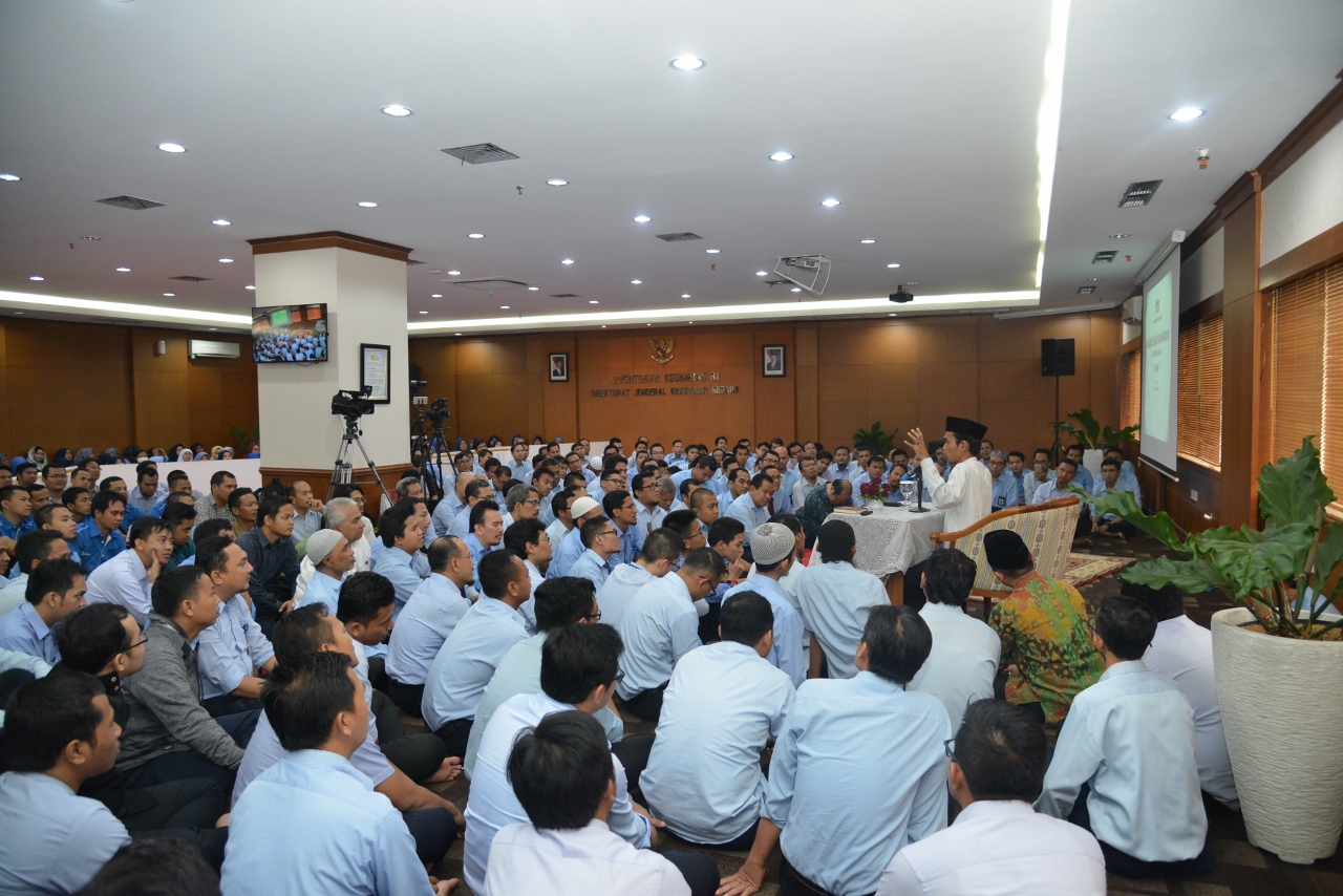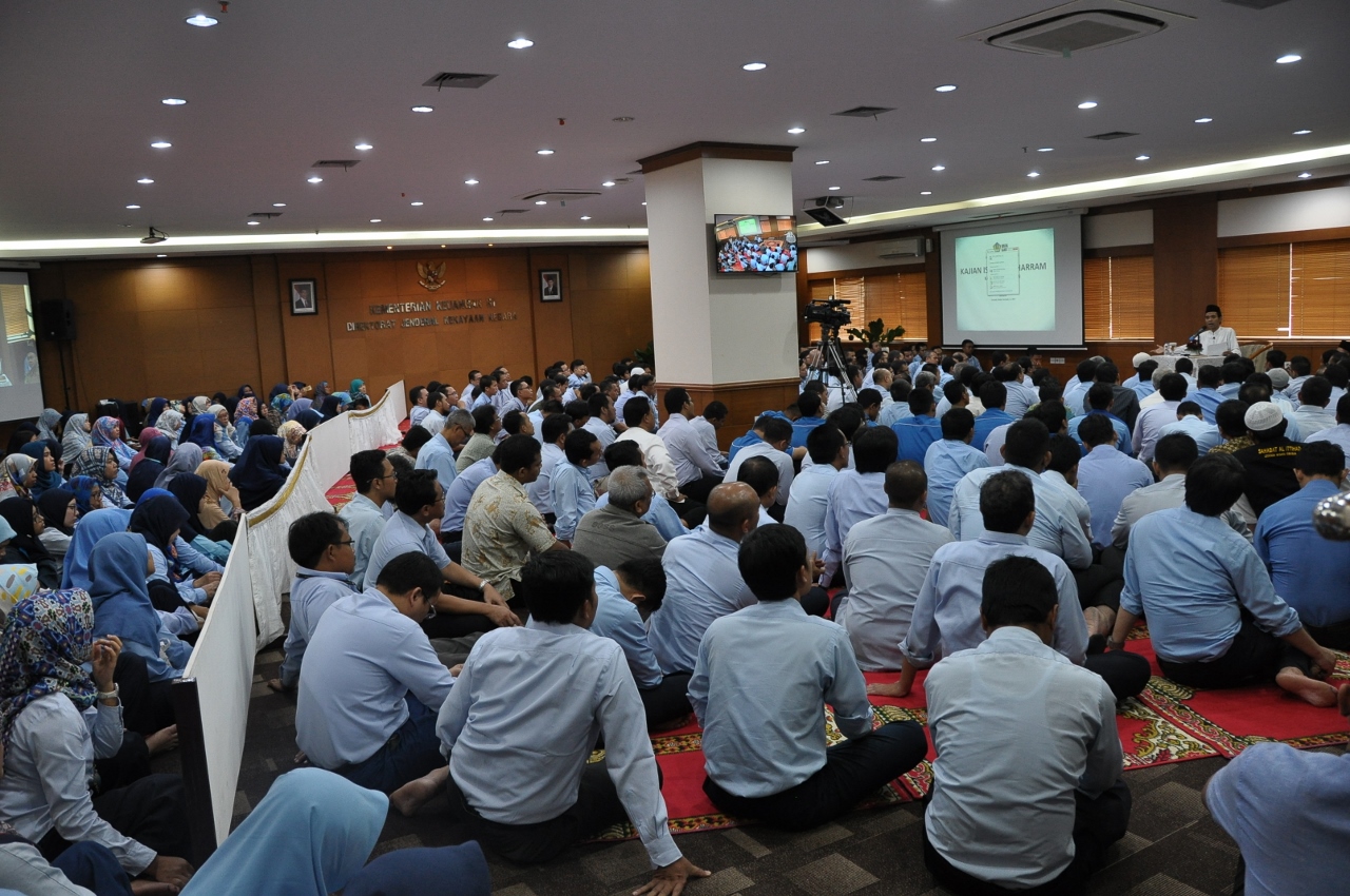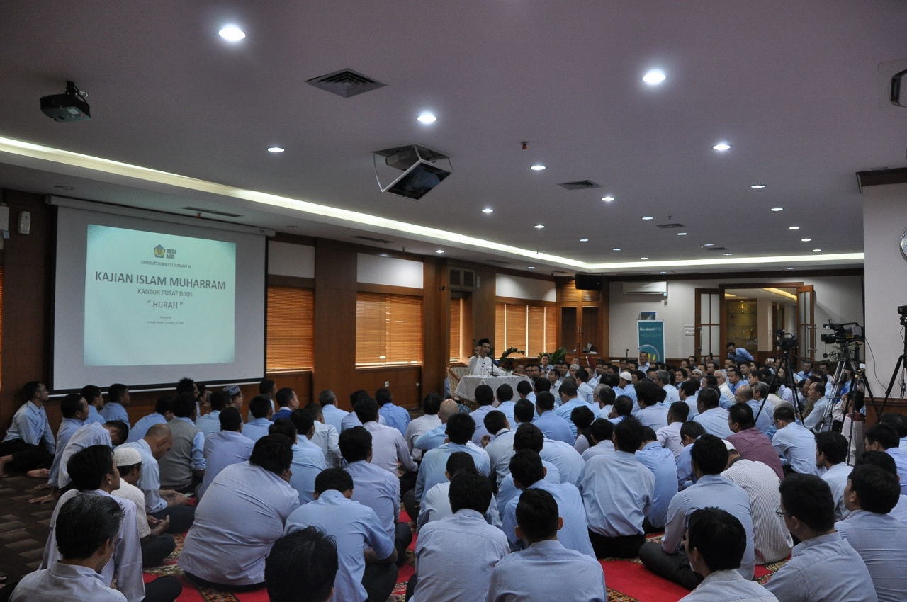 Dirjen Kekayaan Negara Isa Rachmatarwata turut hadir di tengah-tengah jamaah bersama para pejabat eselon II di lingkungan DJKN. Jamaah yang hadir pada Kajian Muharram ini tidak hanya berasal dari DJKN, tetapi juga berasal dari unit eselon I lain di luar DJKN bahkan ada yang berasal dari kementerian/lembaga lain.