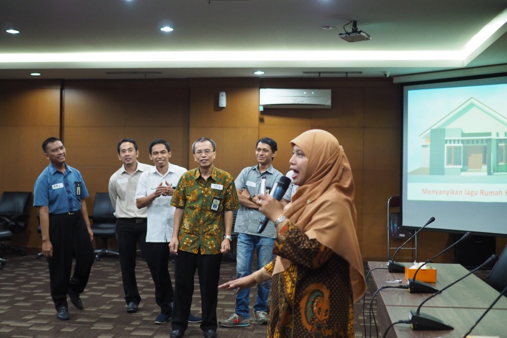 Puncak acara ini dengan tampilnya fasilitator dari Pusdiklat PSDM, Jamilah yang mengisi acara dengan beberapa permainan