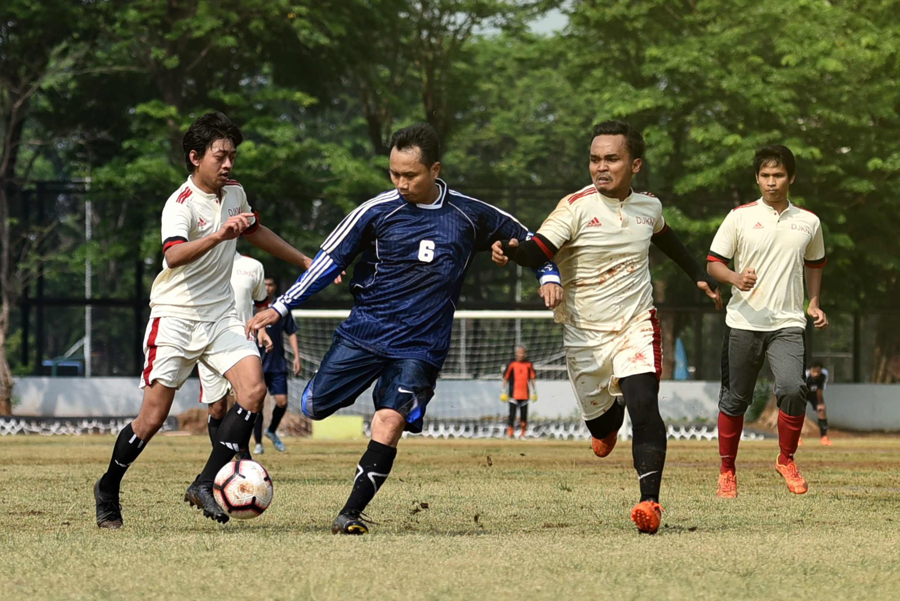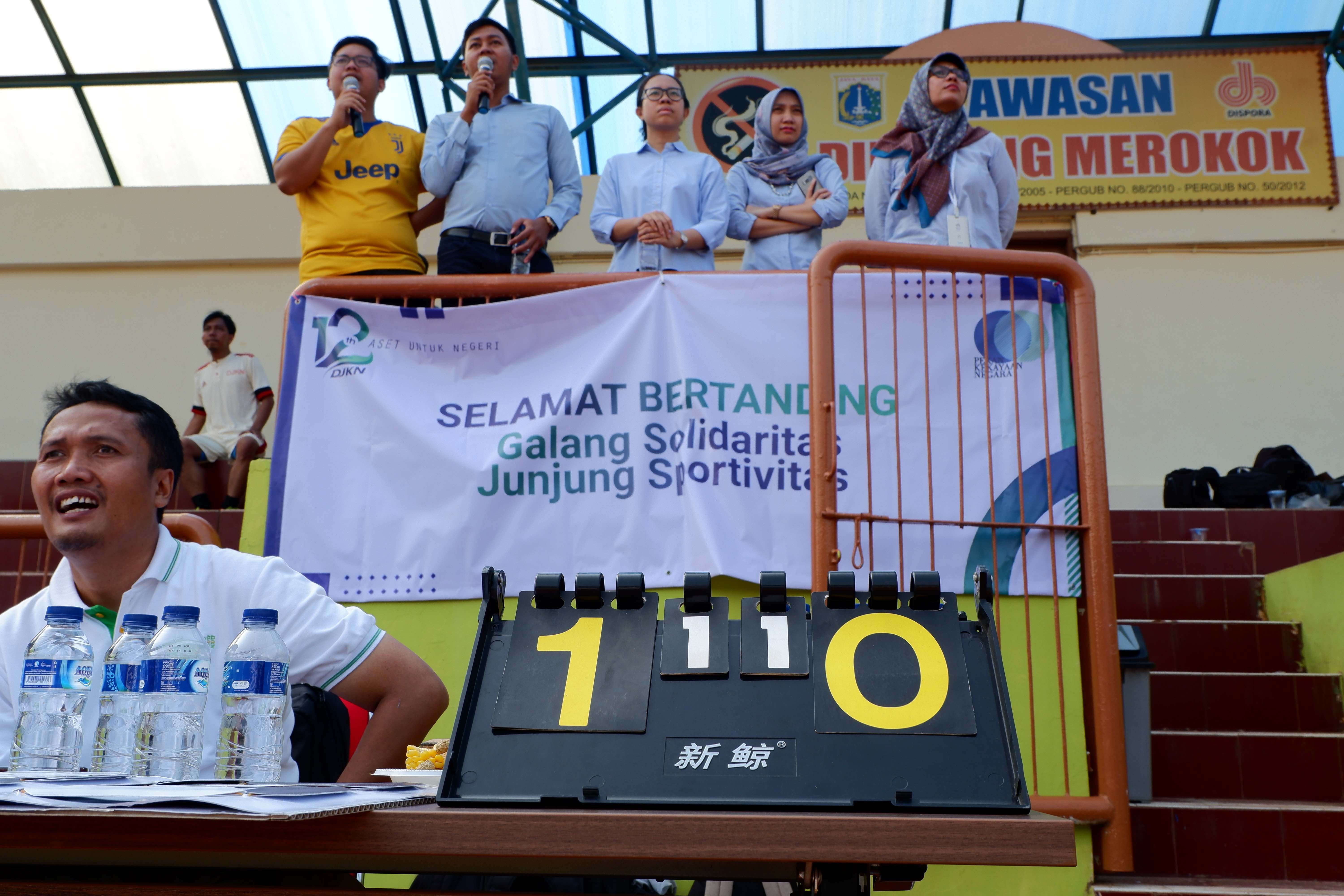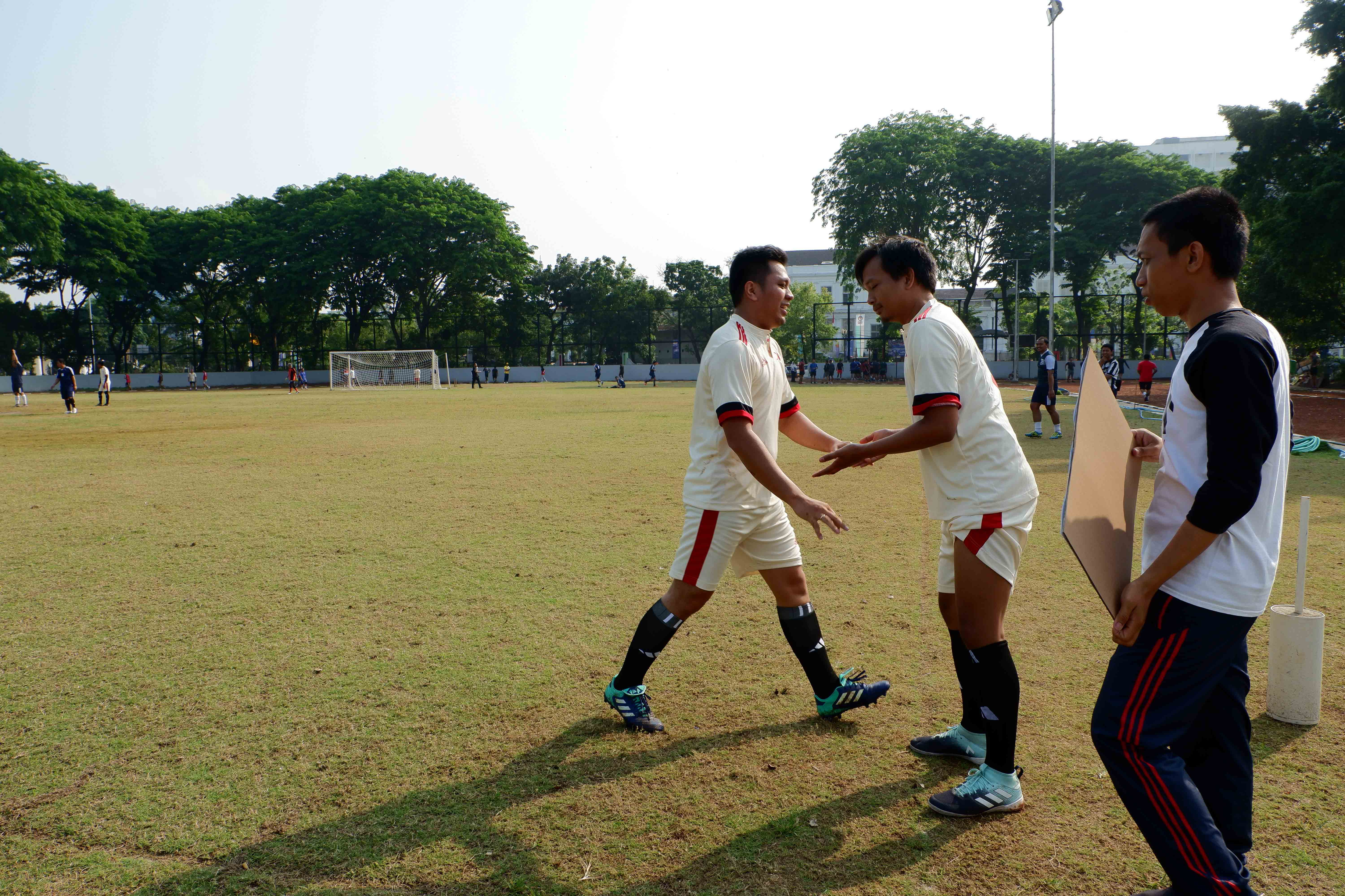 Tak berselang lama, Tim Kantor Pusat berhasil menyamakan skor. Kedua tim terus