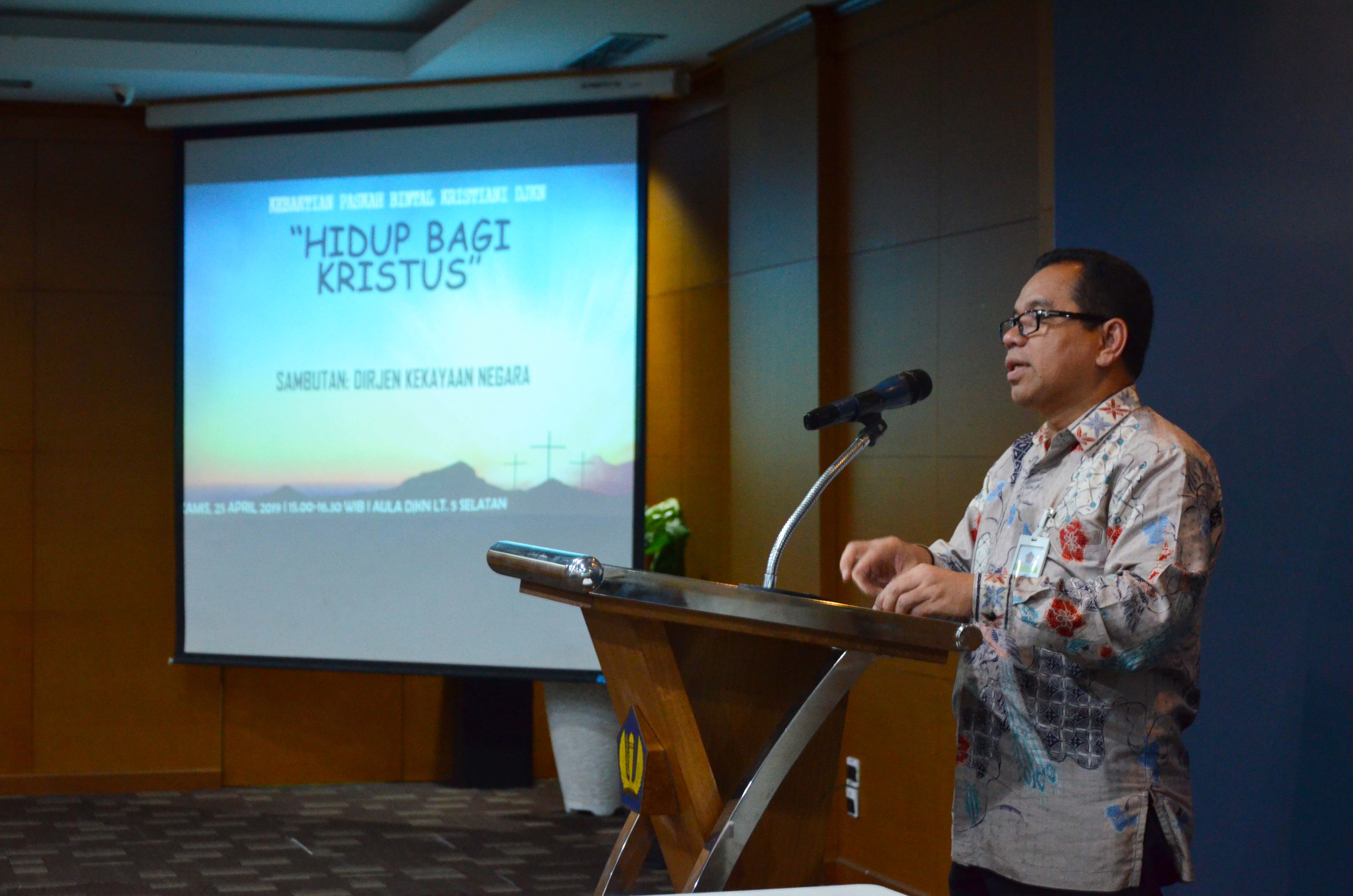 Sebelumnya, Direktur Piutang Negara dan Kekayaan Negara Lain-lain (PNKNL) Purnama T. Sianturi, selaku penanggung jawab kegiatan Bintal Kristiani menyampaikan bahwa Ibadah Paskah DJKN ini merupakan ibadah yang bersifat persekutuan Oikumene, yaitu persatuan dari berbagai gereja dengan prosesi maupun liturgi yang berbeda.