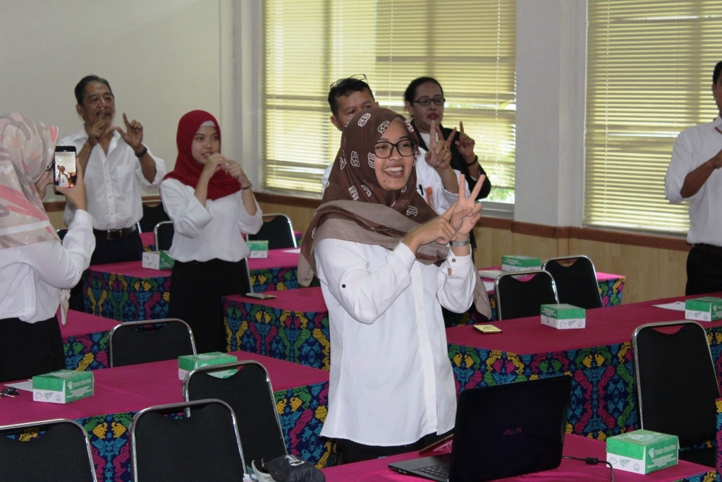 para peserta tidak terlalu kaku dalam menggunakan bahasa isyarat. “Yang