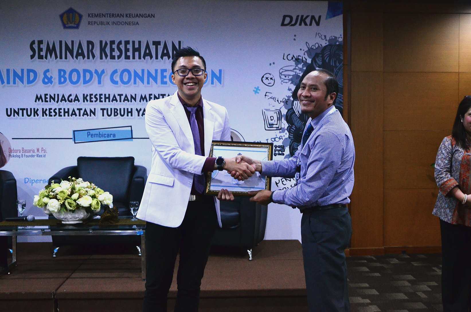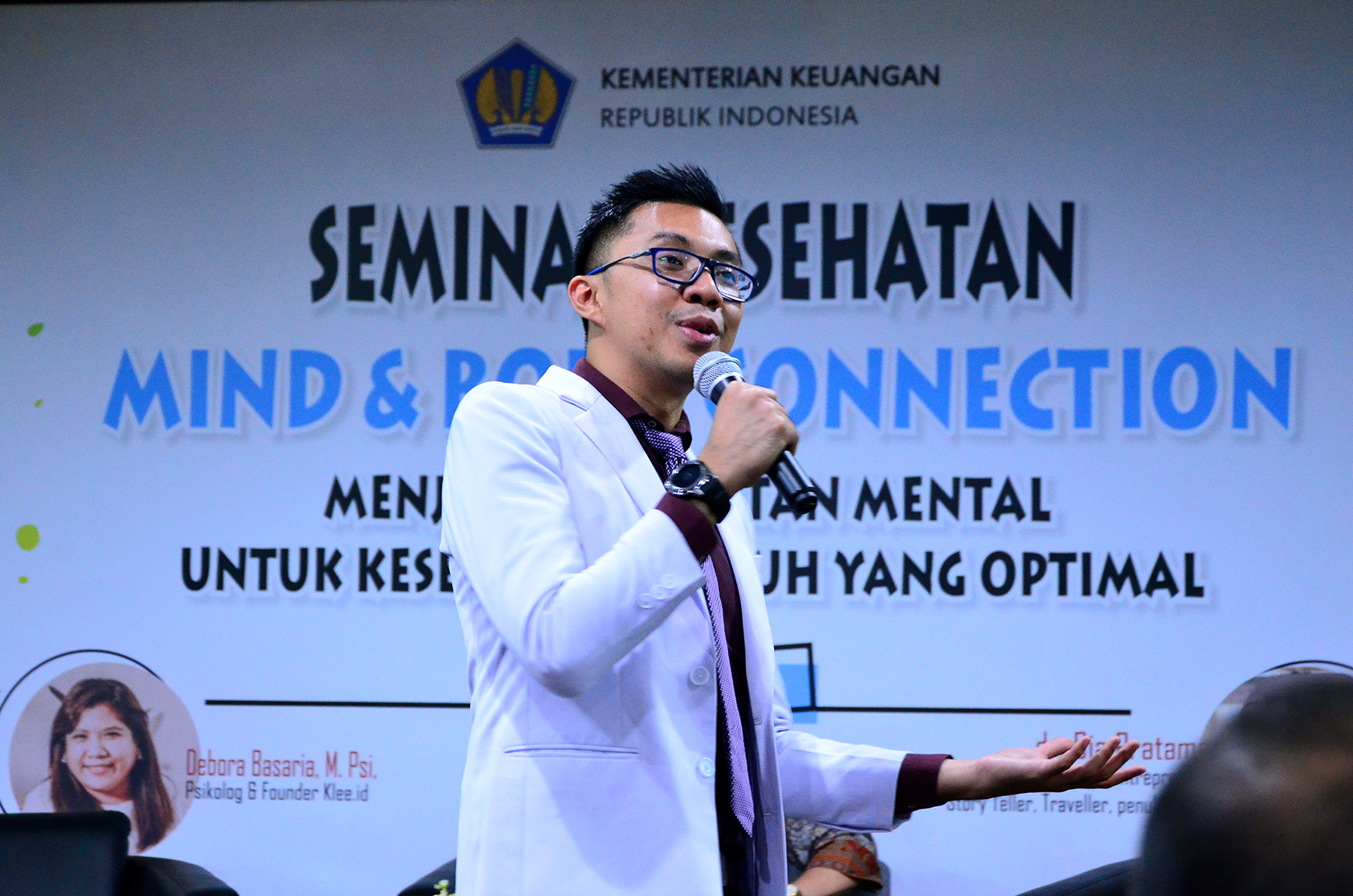 Dari sudut pandang yang berbeda, psikolog dan Founder Klee.id Debora Basaria mengatakan bahwa stres dapat terjadi bergantung pada pemahaman seseorang terhadap situasi yang sedang dihadapi. “Stres terjadi ketika tekanan itu dipersepsi untuk hal yang tidak bisa kita atasi,” ujarnya. Sejalan dengan tema yang diangkat, Debora juga menjelaskan bahwa ketika pikiran terganggu tentu mempengaruhi kondisi fisiologis seseorang yang akhirnya menimbulkan ketidaknyamanan secara fisik. “Semua kondisi fisiologis yang dialami oleh dirinya disebabkan karena memang adanya ketidakseimbangan dalam berpikir atau ketidaknyamanan secara emosi,” ujarnya.