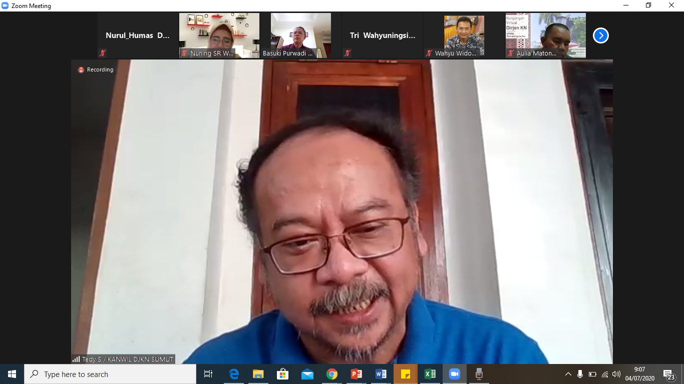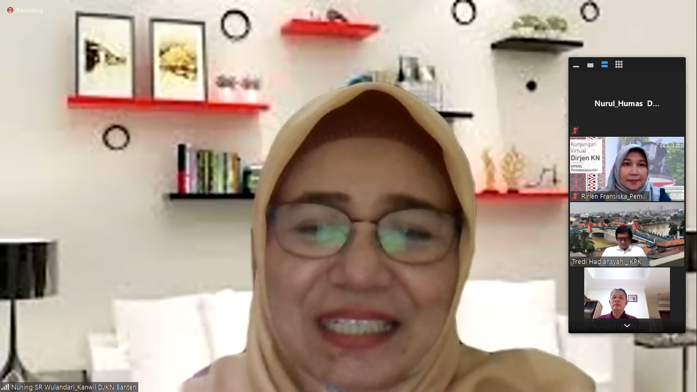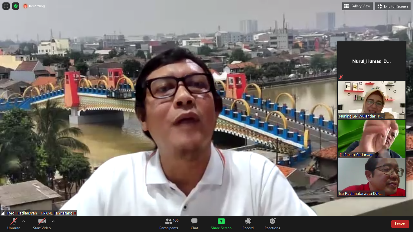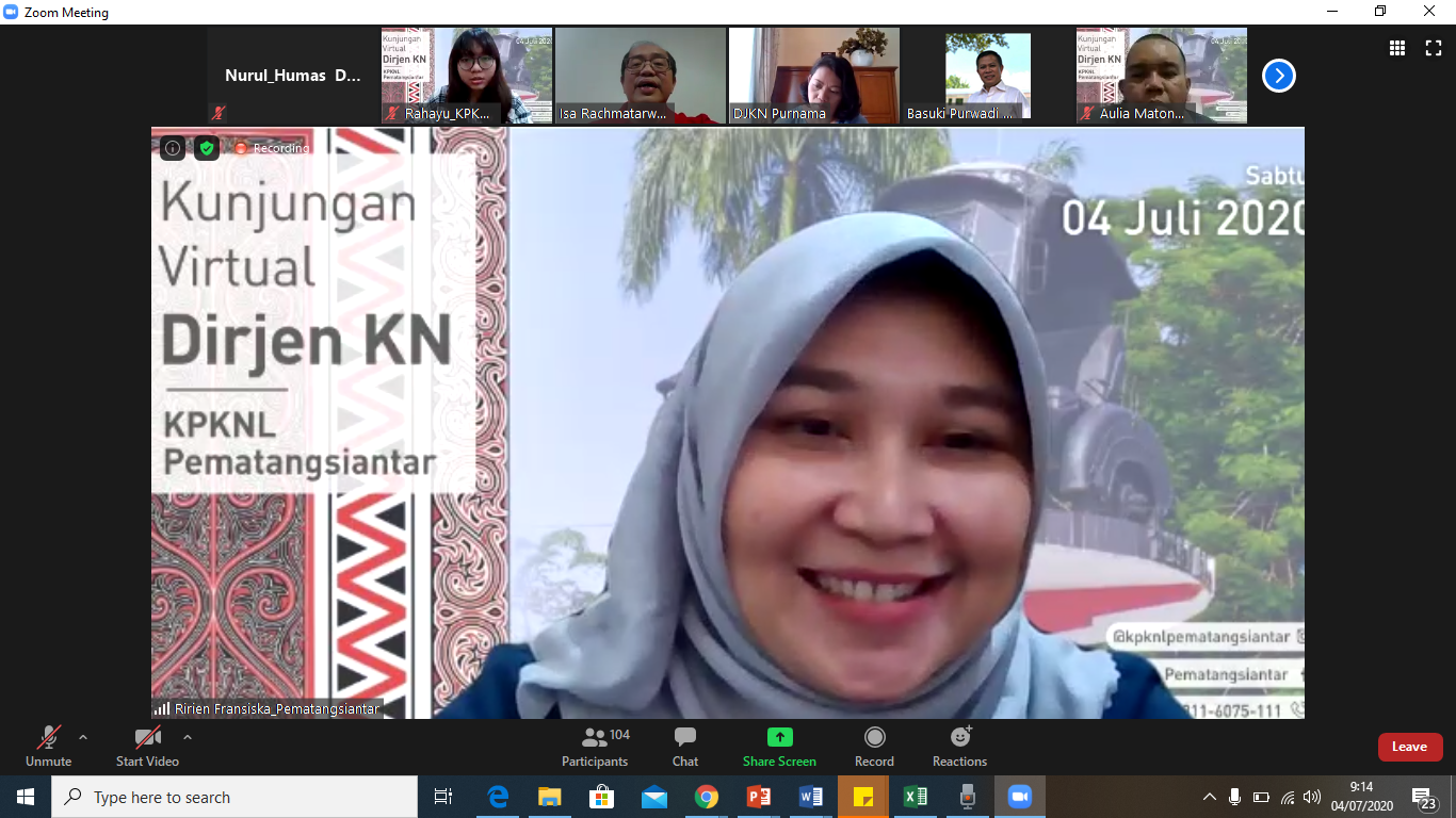 Jakarta - Direktur Jenderal Kekayaan Negara Isa Rachmatarwata melakukan kunjungan ke Kantor Pelayanan Kekayaan Negara dan Lelang (KPKNL) Pematang Siantar dan KPKNL Tangerang II secara virtual pada Sabtu (4/7). Melalui kesempatan ini, Isa mengungkapkan harapannya agar kunjungan virtual tidak hanya digunakan sebagai sarana untuk membicarakan pekerjaan, melainkan juga dapat menjadi momen silaturahmi. “Saya ingin mendengar permasalahan-permasalahan keseharian terkait dengan kehidupan di Tangerang dan Pematang Siantar. Mungkin keadaan sehari-hari itu sebenarnya berdampak pada bagaimana kita melakukan pekerjaan kita,” ujarnya.