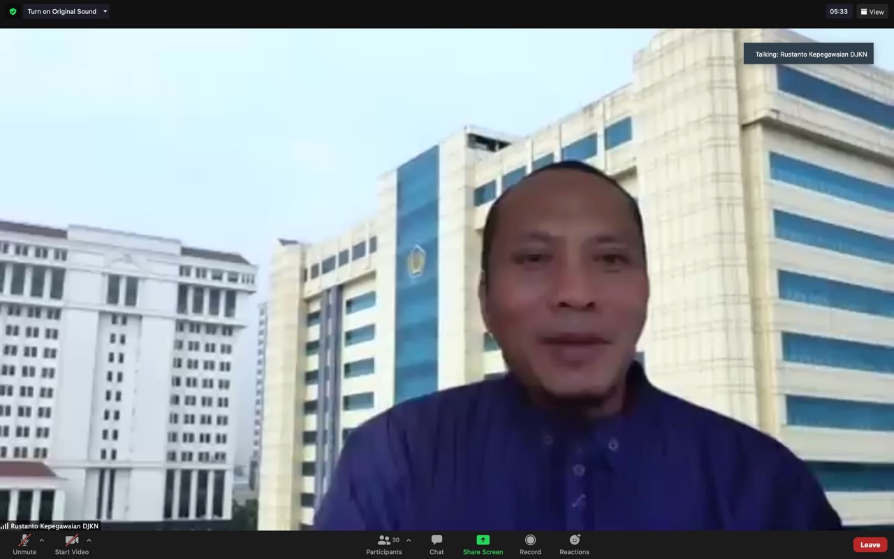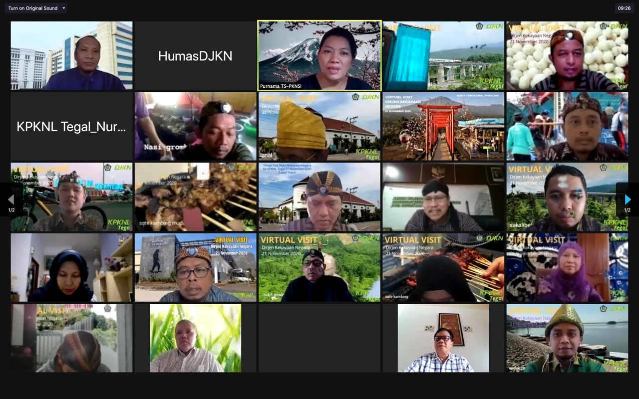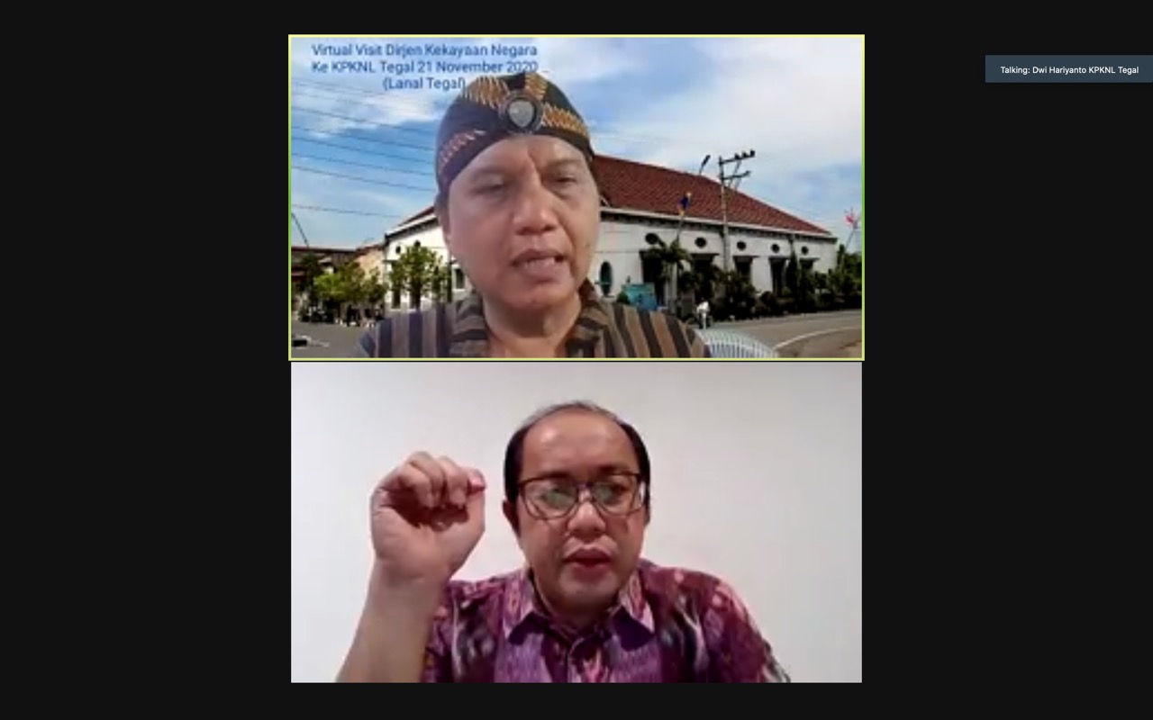 Jakarta – Direktur Jenderal Kekayaan Negara (Dirjen KN) Isa Rachmatarwata melakukan kunjungan secara virtual kepada Kantor Pelayanan Kekayaan Negara dan Lelang (KPKNL) Tegal pada Sabtu (21/11). Kunjungan tersebut bertujuan untuk merekatkan hubungan kekeluargaan pada Direktorat Jenderal Kekayaan Negara (DJKN) serta untuk menyaring aspirasi dan inspirasi yang dapat membangun DJKN untuk menjadi instansi yang semakin baik. “Maksud dari kunjungan virtual ini adalah mencoba untuk bersilaturahim dan mencoba mendapatkan pemikiran-pemikiran, ide-ide untuk kesegaran organisasi kita,” terang Isa.