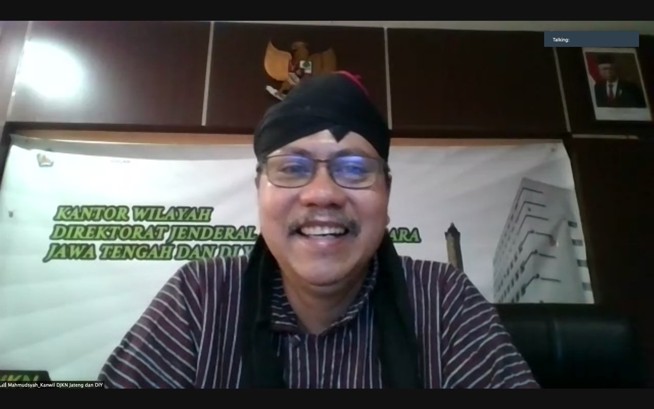 Melalui kunjungan virtual tersebut, Kepala Kantor Wilayah (Kanwil) DJKN Jawa Tengah dan Daerah Istimewa Yogyakarta Mahmudsyah dan Kepala KPKNL Tegal Dwi Haryanto menyampaikan perkembangan situasi pada wilayah kantornya. Dalam laporannya, Mahmudsyah mengatakan bahwa selama pandemi KPKNL Tegal tetap melayani stakeholders dengan tetap menerapkan protokol Kesehatan yang ketat. “Jadi tetap meningkatkan layanan melalui sosialisasi, webinar, konsultasi dan banyak lebih menekankan pada pelayanan daring,” jelasnya.