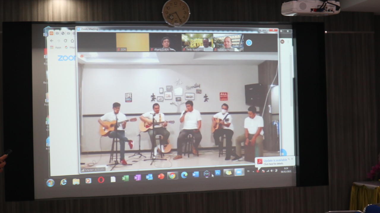 Direktur dan Tenaga Pengkaji serta seluruh peserta virtual visit pun ikut bernyanyi