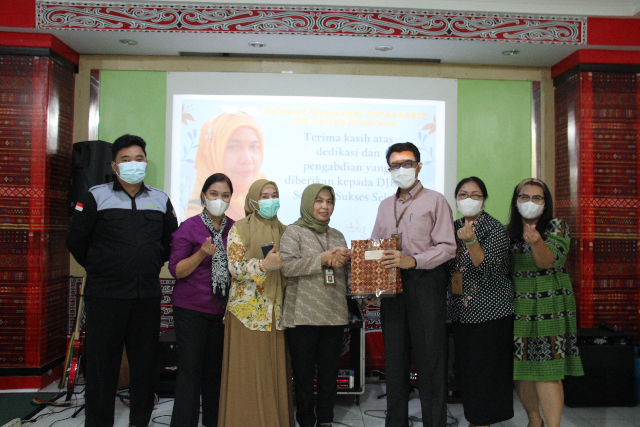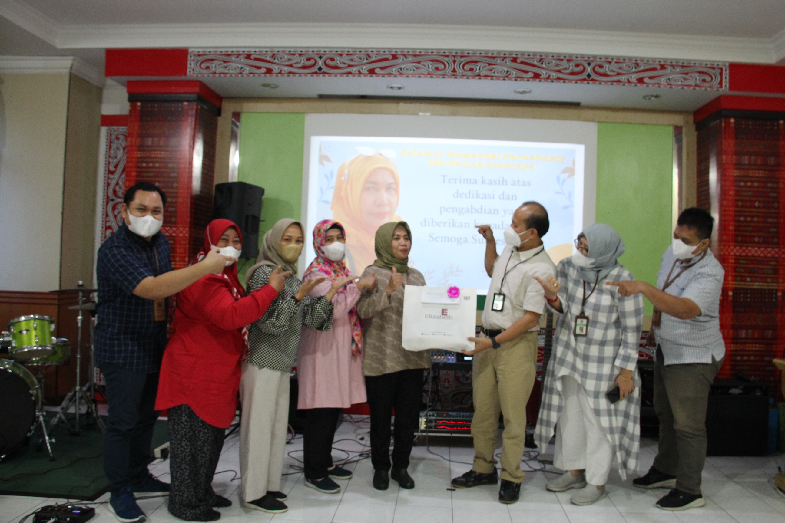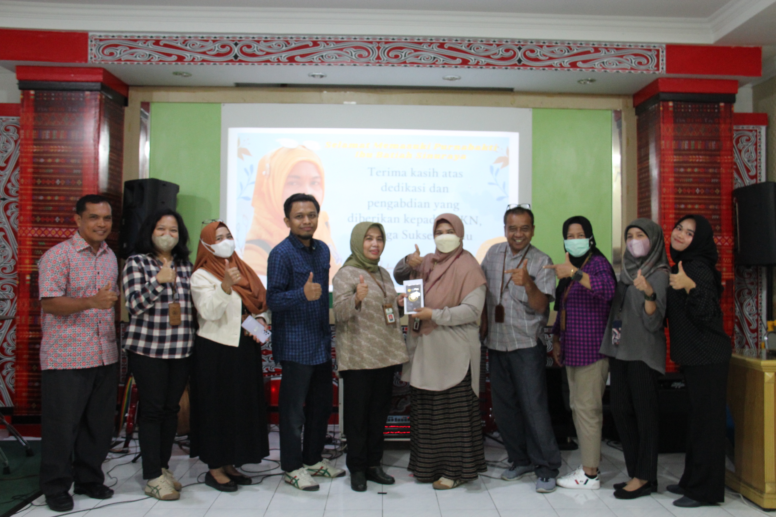 pemberian kenang-kenangan dari seluruh bidang kepada Ibu Batiah Sinuraya.