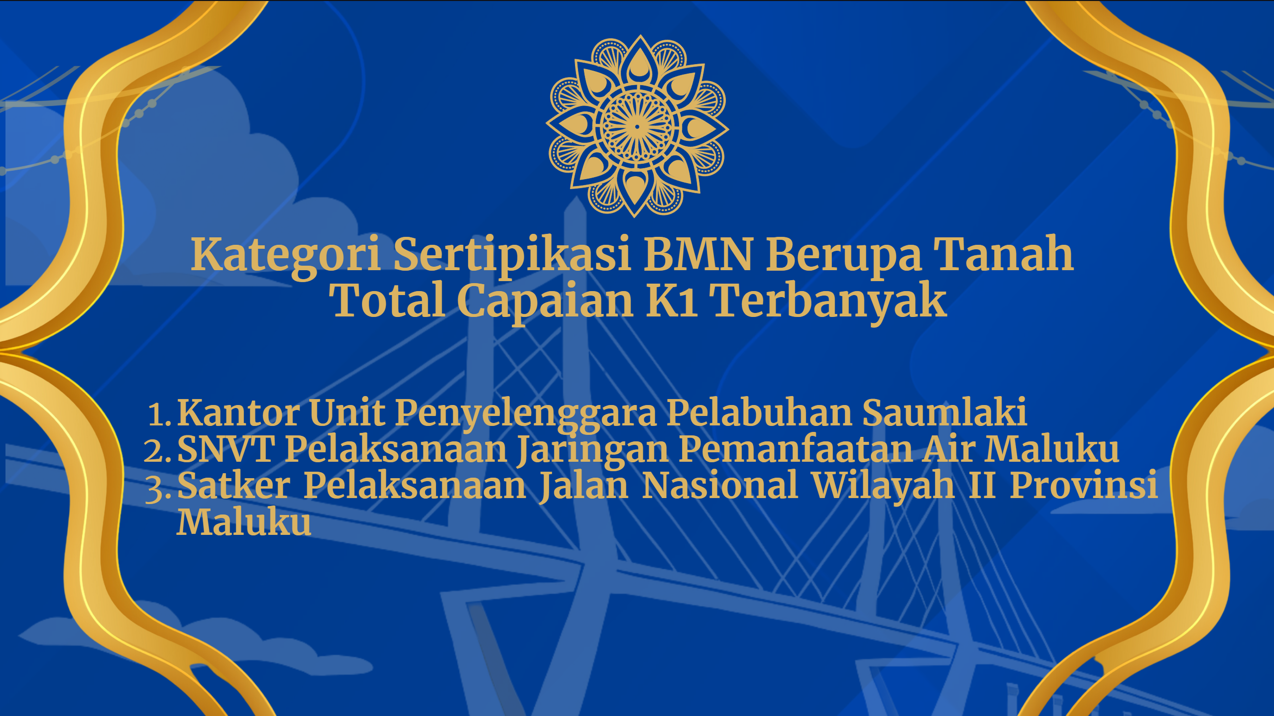 1 Sertipikasi BMN Berupa Tanah Total capaian K1 terbanyak