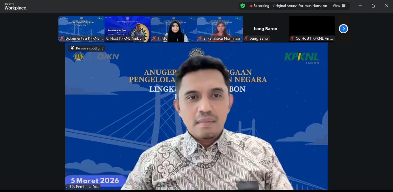dilaksanakan secara daring melalui kanal zoom. Plt. Kepala Kanwil DJKN