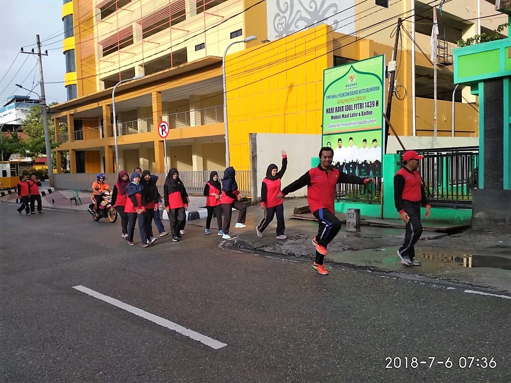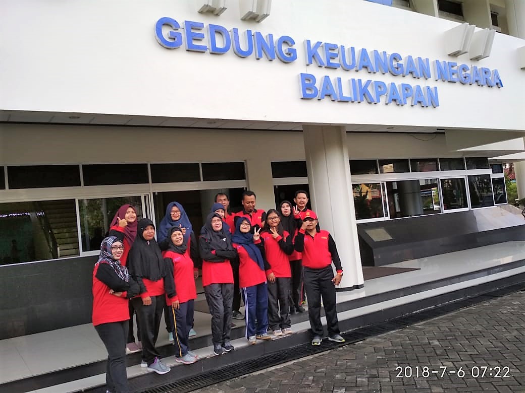 Balikpapan. Opor ayam pake ketupat…disajikan di Hari Raya, agar tubuh sehat dan kuat… jangan lupa berolahraga. Kesehatan adalah hal yang sangat penting dalam menunjang aktivitas dan kinerja sehari-hari, mendukung hal tersebut Kantor Pelayanan Kekayaan Negara dan Lelang (KPKNL) Balikpapan pada Jumat pagi 6 Juli 2018 mengadakan kegiatan Jalan Sehat bersama seluruh pegawai. Kegiatan yang rutin diadakan dengan tema Jumat Sehat ini diharapkan dapat menjaga kebugaran dan kesehatan para pegawai. Start dari lokasi kantor KPKNL Balikpapan jalan sehat mengambil rute sekitar Jalan Ahmad Yani dan Jalan Jenderal Sudirman kemudian finish kembali ke KPKNL Balikpapan. Sembari menikmati suasana kota Balikpapan di pagi hari jalan sehat diikuti dengan ceria dan semangat.