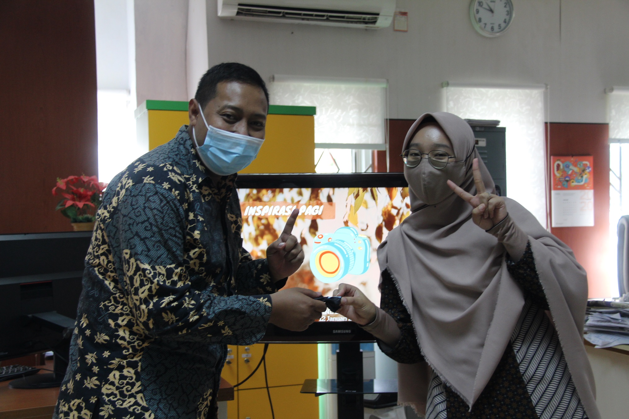 dari dua pertanyaan tersebut dengan benar, sehingga mereka berdua diganjar souvenir yang diberikan oleh MC.