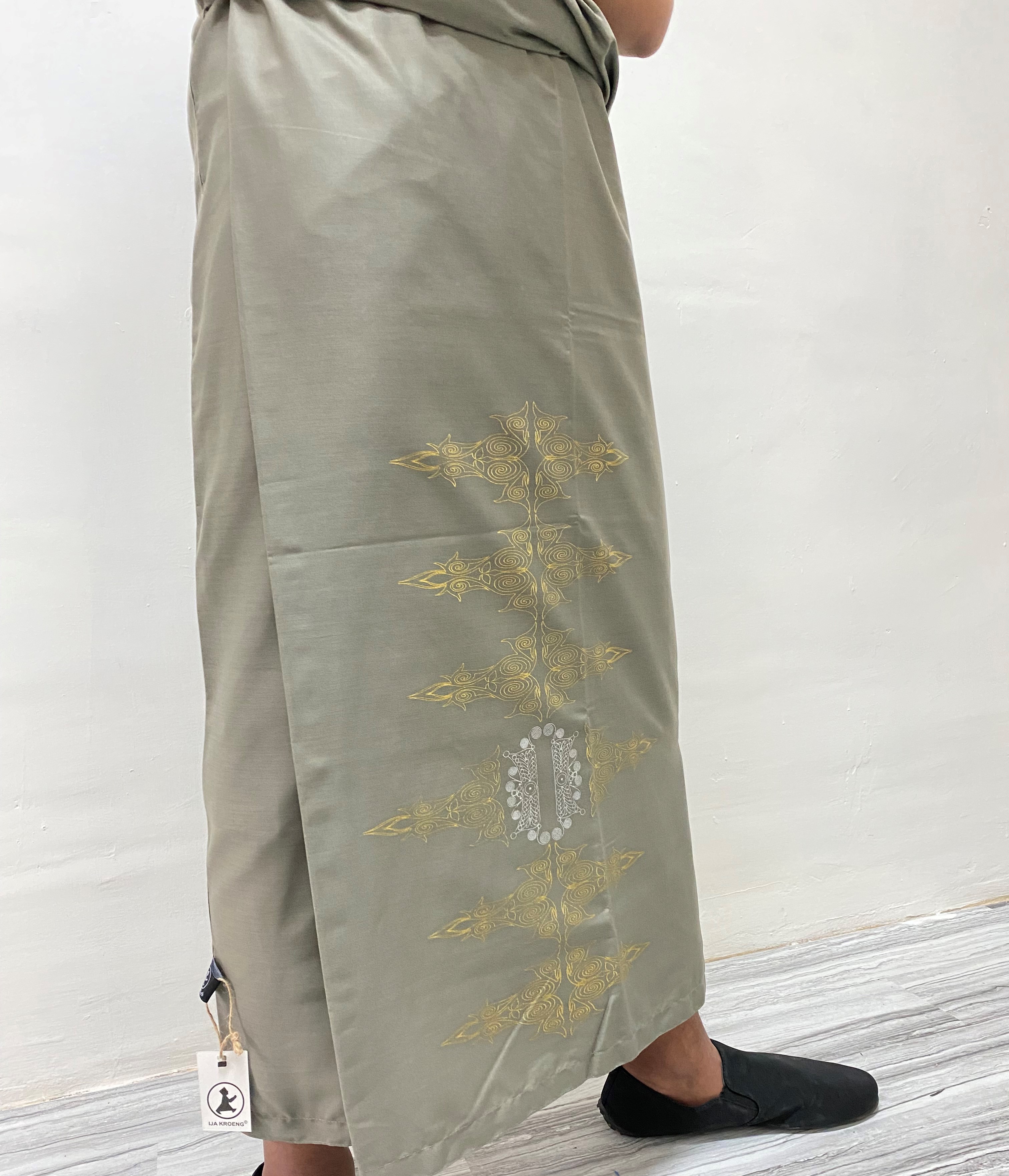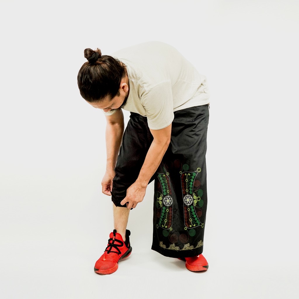 antaranya satu sarung ikat bermotif, dua celana sarung bermotif, dan dua kain sarung