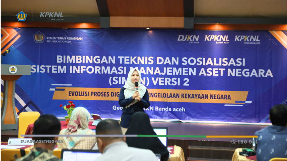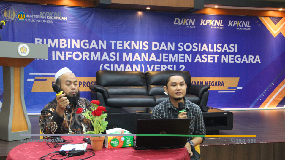 Banda Aceh – Kantor Pelayanan Kekayaan Negara dan Lelang (KPKNL) Banda Aceh bersama Kanwil Direktorat Jenderal Kekayaan Negara (DJKN) Aceh dan KPKNL Lhokseumawe sukses menggelar kegiatan Bimbingan Teknis dan Sosialisasi Sistem Informasi Manajemen Aset Negara (SIMAN) Versi 2 dengan tema "Evolusi Proses Digitalisasi Pengelolaan Kekayaan Negara." Kegiatan ini dilaksanakan guna mendukung persiapan implementasi aplikasi SIMAN V2 di seluruh Kementerian/Lembaga (K/L) serta memberikan bimbingan teknis kepada satuan kerja terkait.