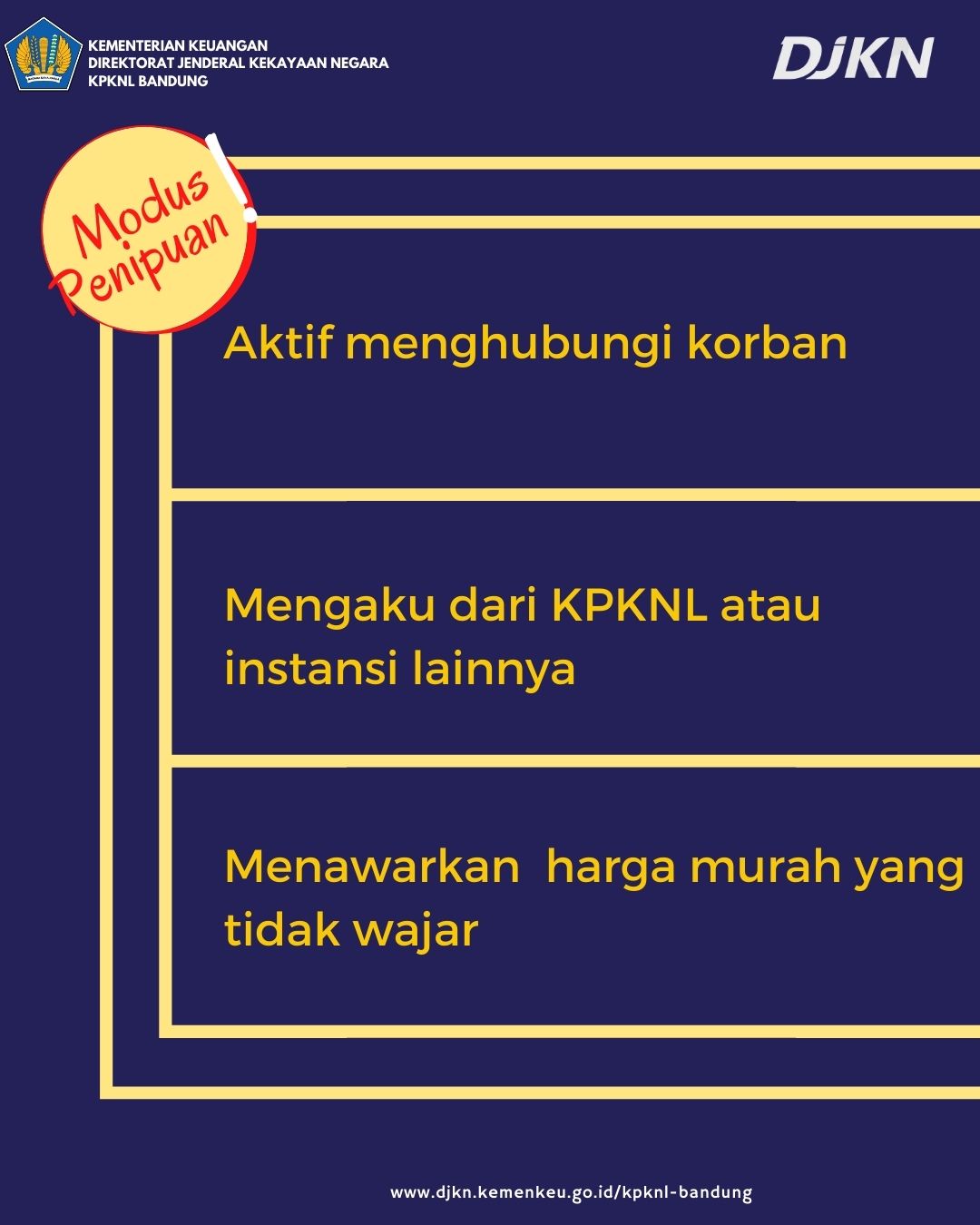untuk berhati-hati atas penipuan bermoduskan lelang yang mengatasnamakan DJKN,