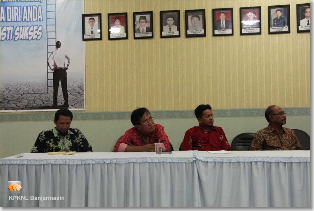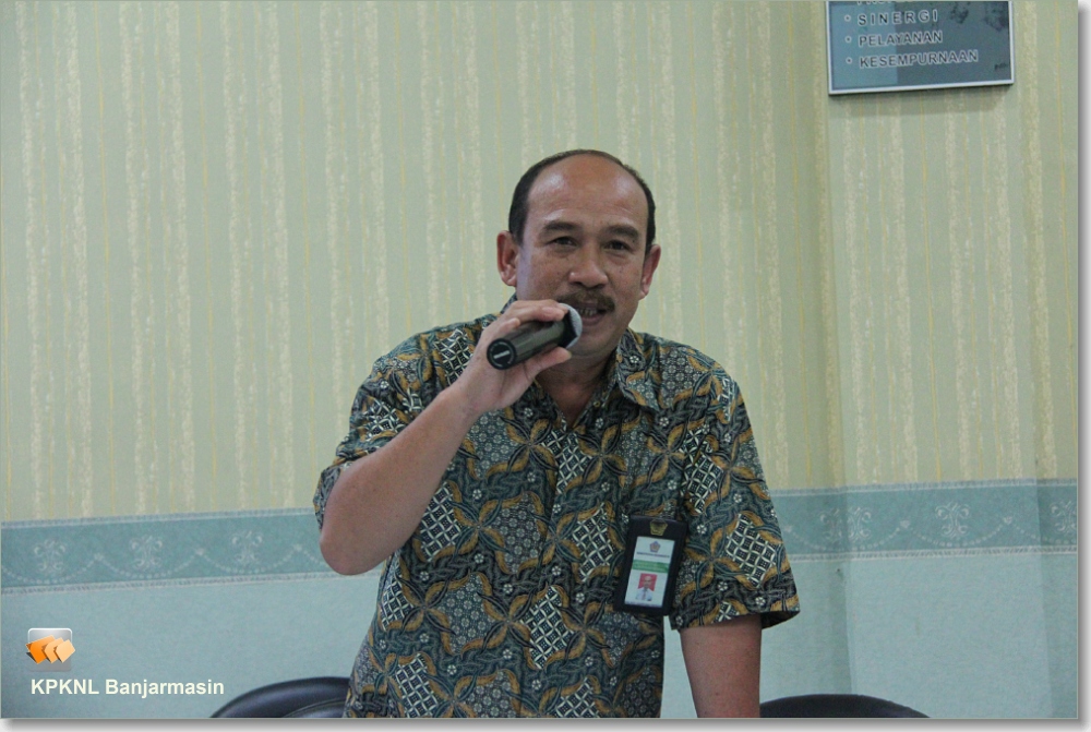 Banjarmasin – Jumat, 02 Desember 2016, Kepala Bidang Penilaian Kanwil Direktorat Jenderal Kekayaan Negara (DJKN) Kalimantan Selatan dan Tengah Kresno Mulyono didampingi Kepala Seksi Penilaian Bidang Penilaian Bayu Firdaus dan Staf Dinung Herpani Demal melaksanakan pembinaan penilai dan sosialisasi peraturan terkait penilaian di Kantor Pelayanan Kekayaan Negara dan Lelang (KPKNL) Banjarmasin.