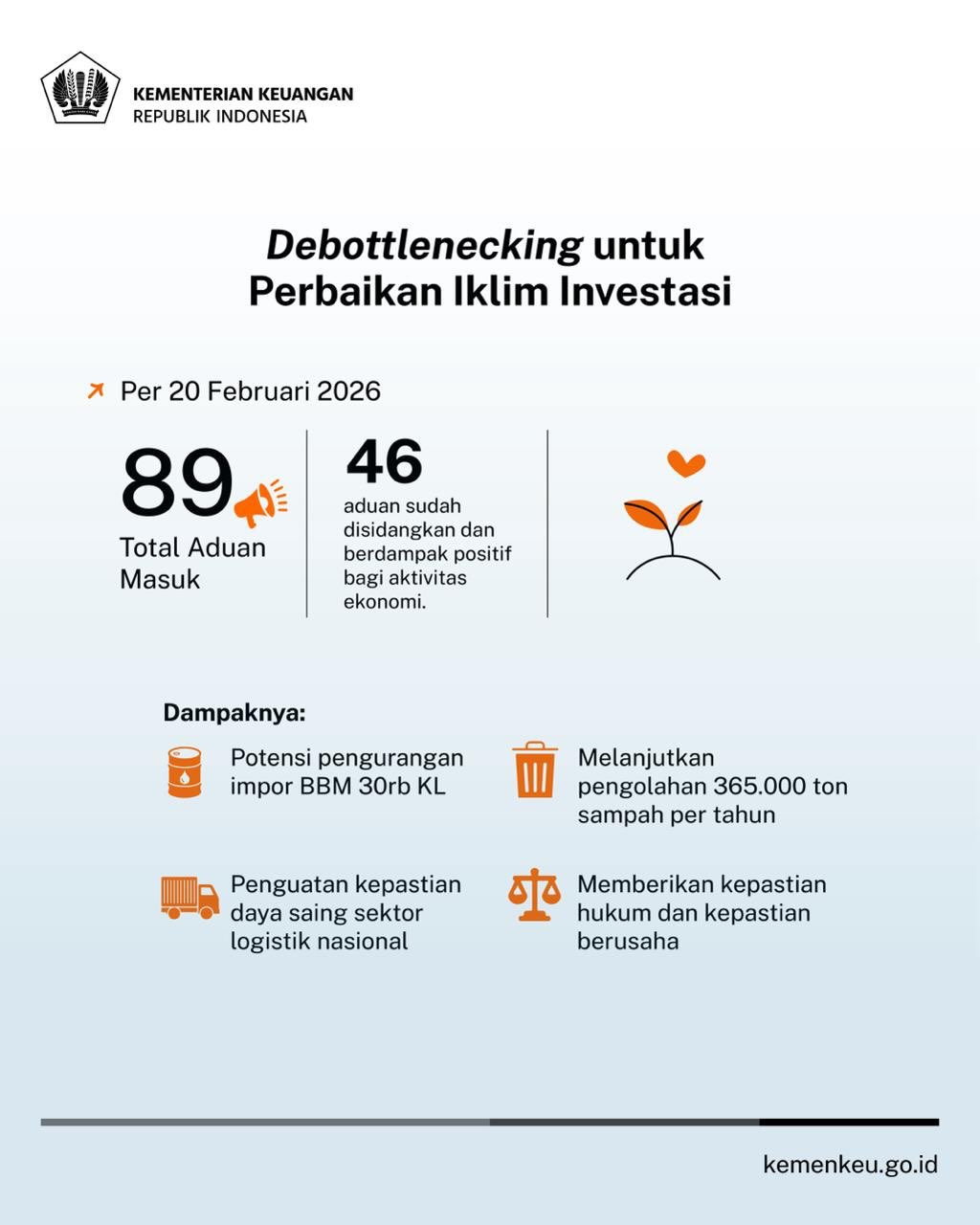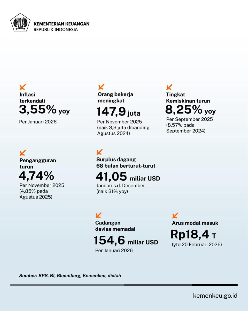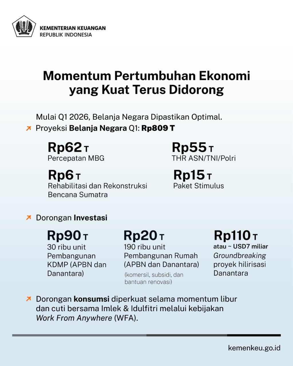 Perekonomian Indonesia pada tahun 2025 berhasil tumbuh 5,11% yoy dengan pertumbuhan di kuartal terakhir mencapai 5,39% yoy. Momentum ini terus terjaga hingga di awal tahun 2026. Postur APBN sampai dengan 31 Januari 2026: