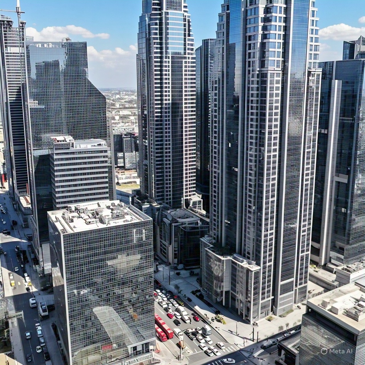 gedung-gedung perkantoran. Gambar dibuat dengan menggunakan Meta AI with Llama