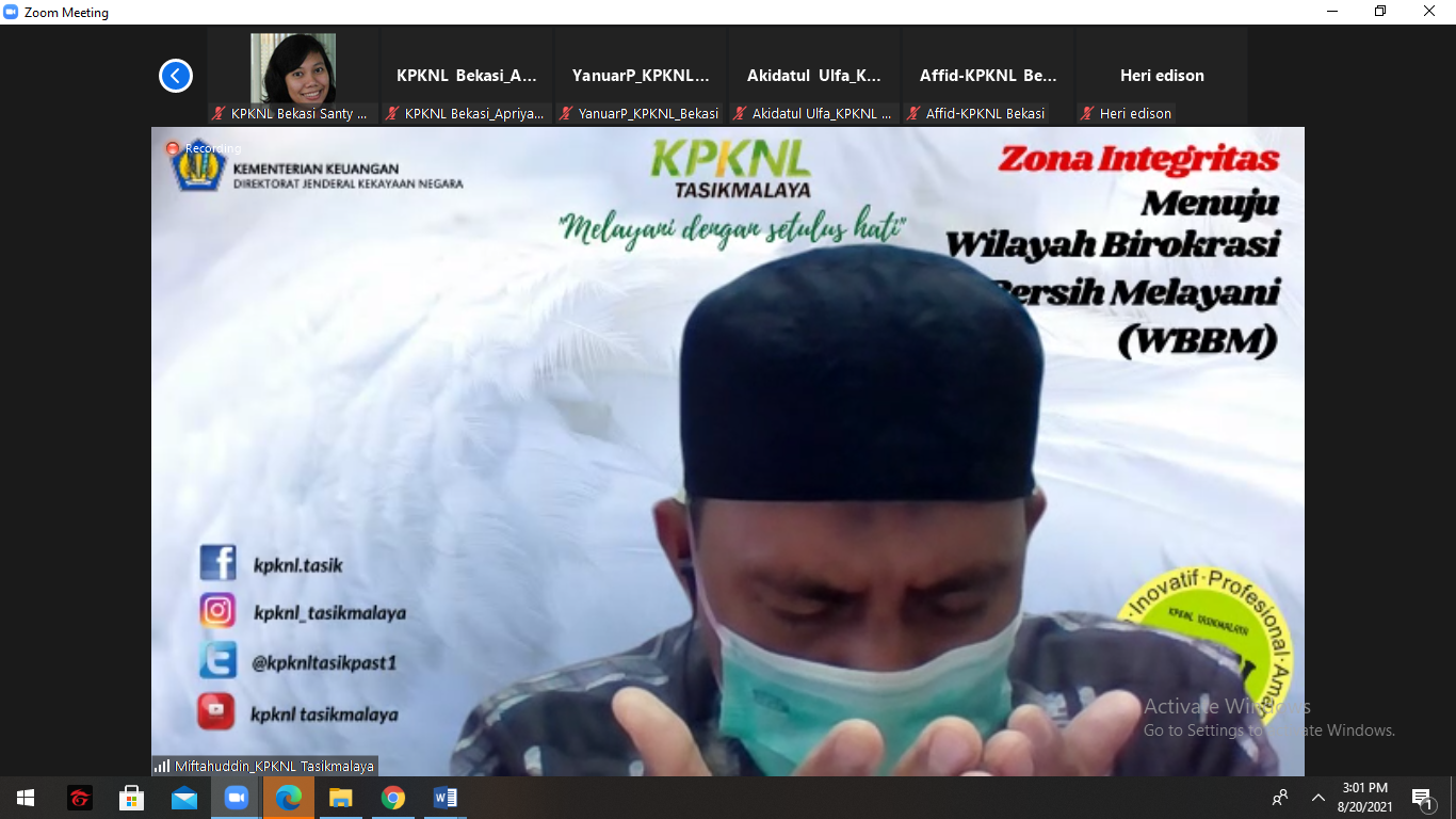 maka pada Jumat 20/08 jajaran KPKNL Bekasi melakukan doa bersama dan