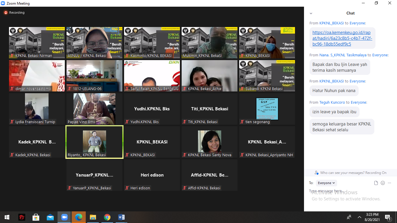 Alm ini menyampaikan terima kasih kepada seluruh jajaran KPKNL Bekasi dan DJKN