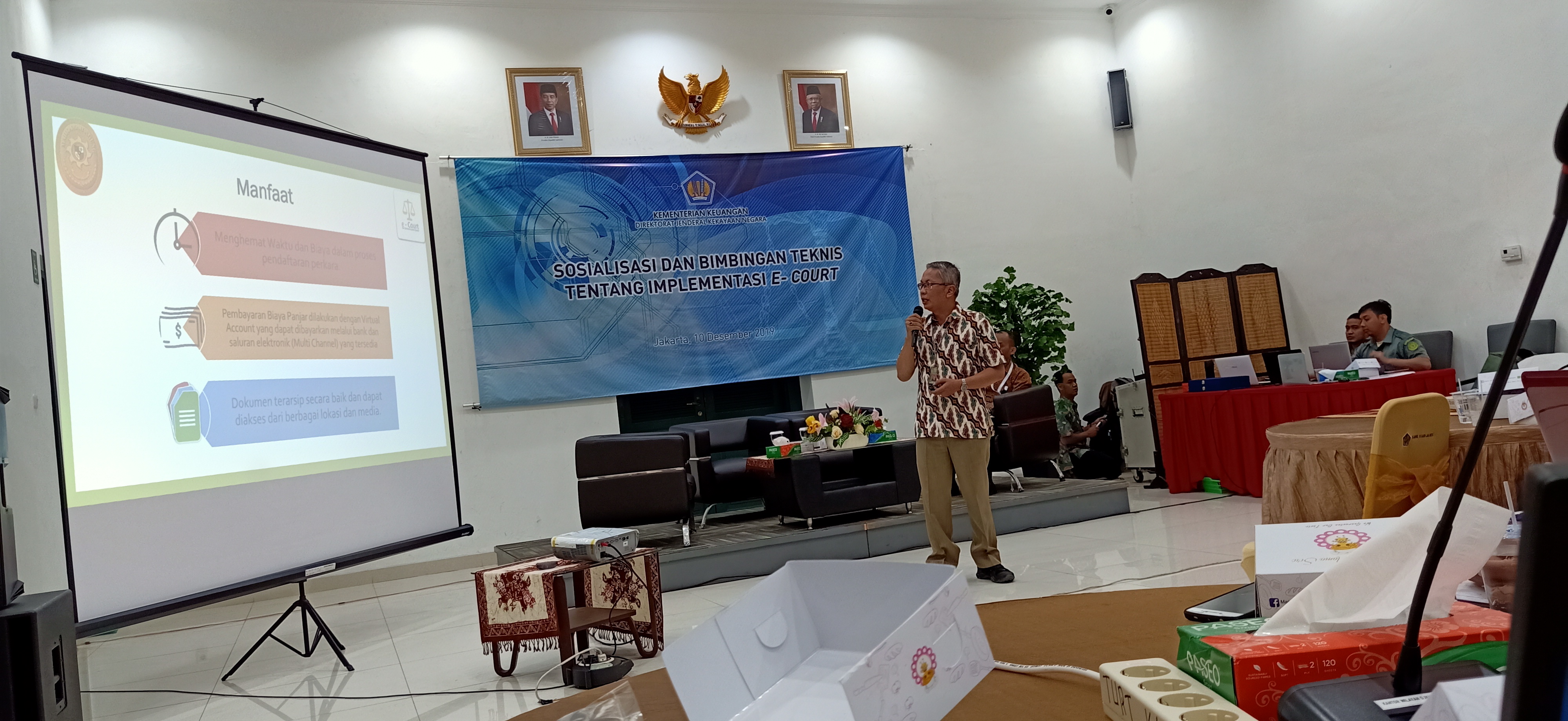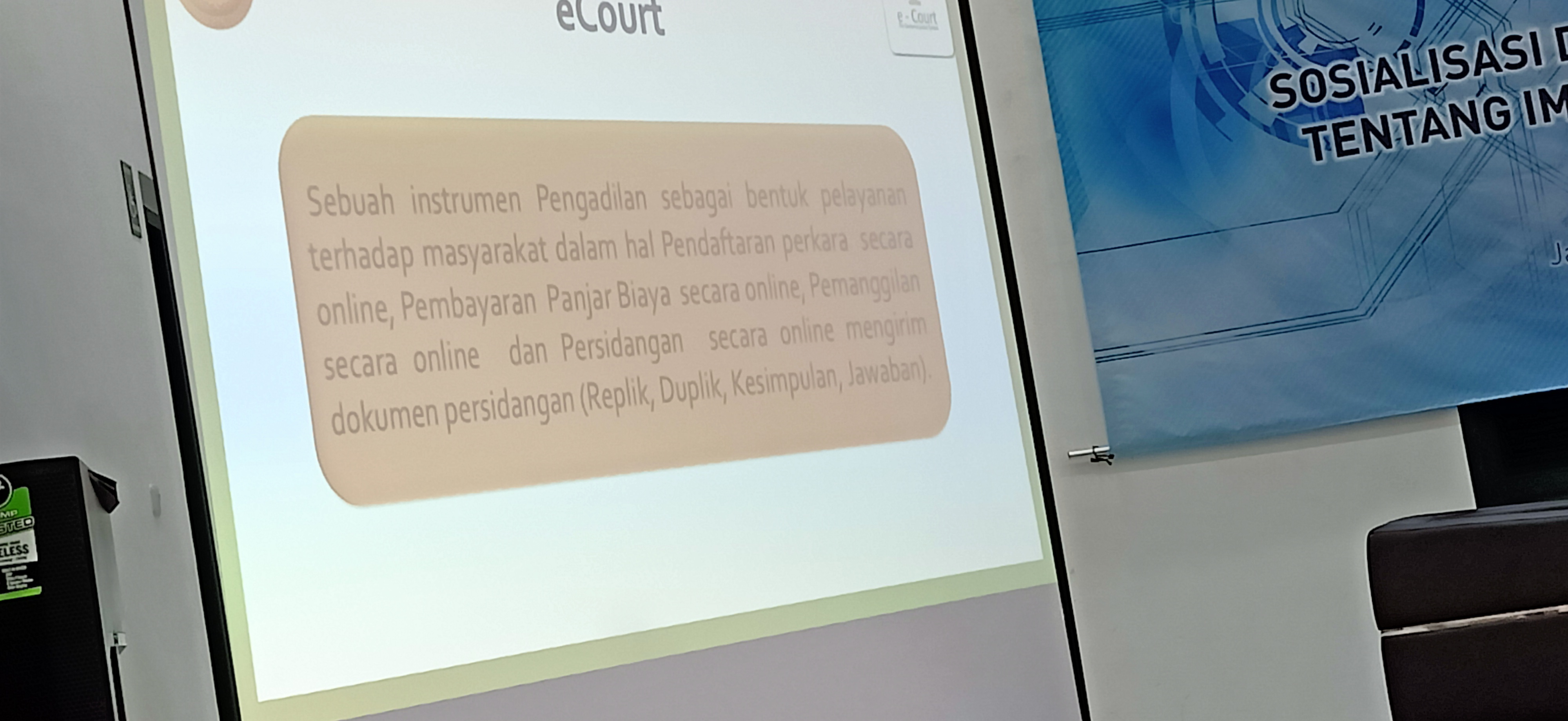 E-court adalah sebuah aplikasi yang diterbitkan dan diluncurkan oleh Mahkamah Agung (MA) yakni sesuai dengan Perma No 3 tahun 2018 dan No. 1 tahun 2019 untuk mewujudkan azas peradilan sederhana, cepat, dan biaya ringan. Mengikuti tren dan perkembangan teknologi dan era digitalisasi serta untuk memberikan kemudahan kepada masyarakat Pencari Keadilan maka MA memandang perlu untuk melaksanakan litigasi melalui e-litigasi atau secara elektronik melalui E-Court ini.
