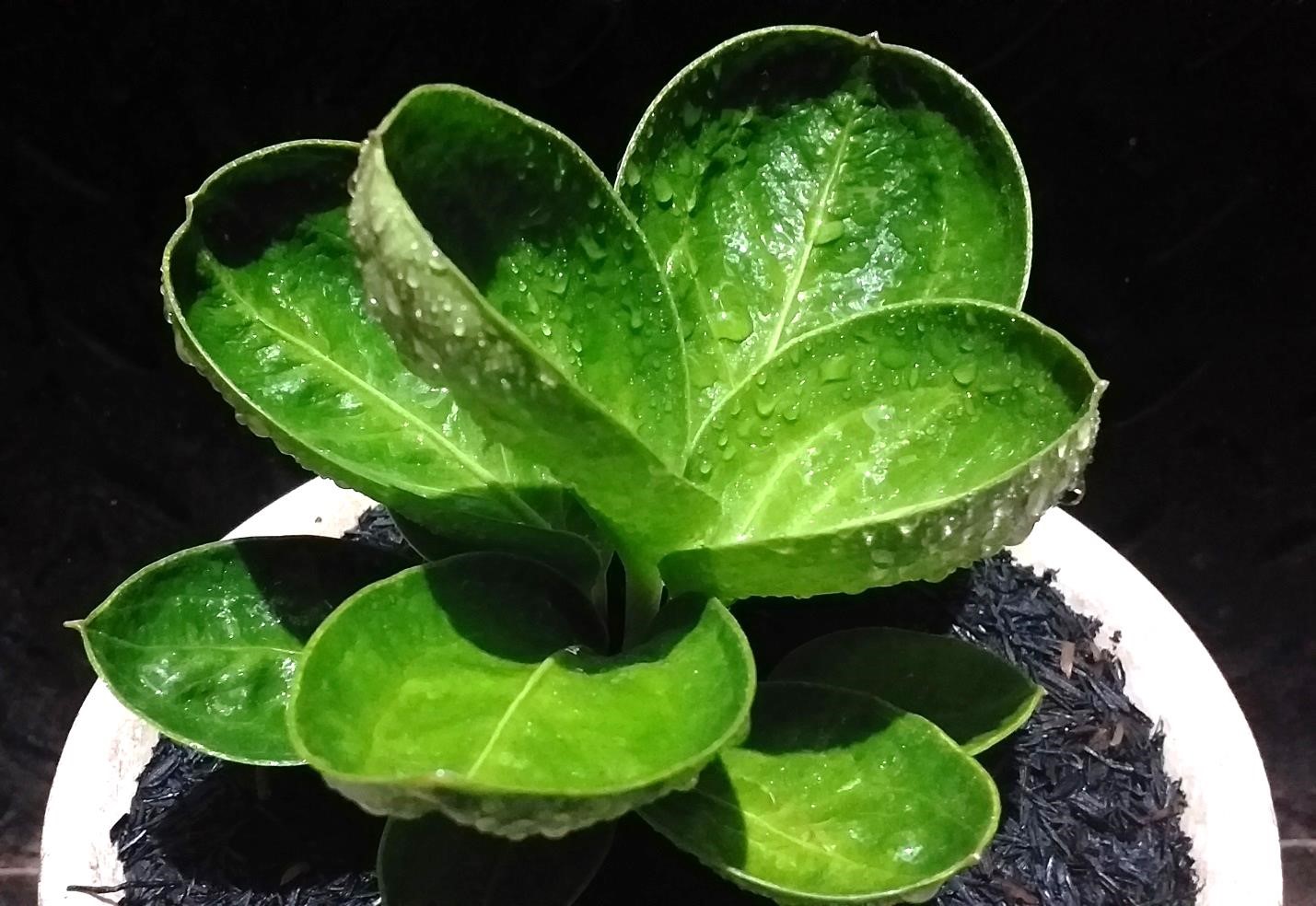bentuk daun membulat dan cekung yang menyerupai bentuk mangkuk.