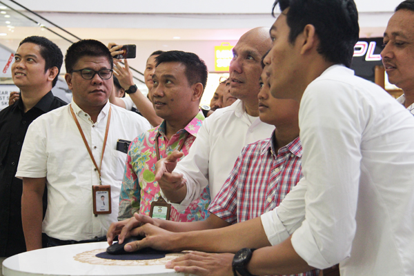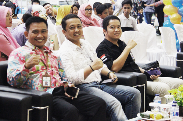 turut serta mendampingi salah seorang pengunjung menekan tombol undian guna