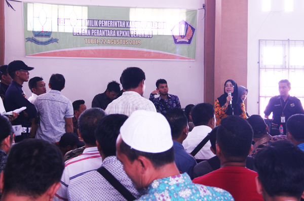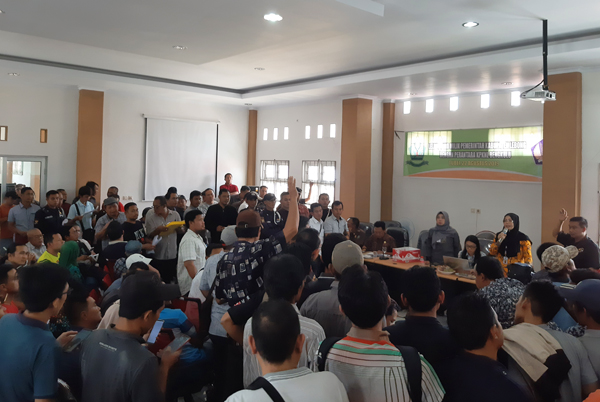 Lebong – Puluhan orang memadati Aula Pendapatan Badan Keuangan Daerah (BKD) Kabupaten Lebong guna mengikuti lelang Noneksekusi Wajib Barang Milik Daerah berupa 79 unit mobil dinas (mobnas) yang dilakukan oleh Kantor Pelayanan Kekayaan Negara dan Lelang (KPKNL) Bengkulu, Lebong, Kamis (22/8). Dari total 79 unit mobnas, 78 unit terjual dengan total Rp4,2 Milyar.
