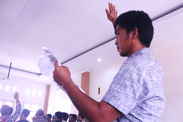penawaran secara lisan. “Kalau secara tertulis, ya rentan adanya penyusupan berkas penawaran oleh oknum panitia”,
