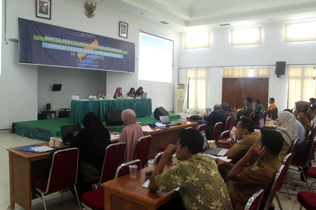 Memasuki awal bulan di tahun 2020, KPKNL Bengkulu mendapatkan kehormatan untuk menyampaikan current issue terkait pengelolaan kekayaan negara di tengah kegiatan Bimbingan Teknis (Bimtek) Penyusunan Laporan Keuangan Tingkat Satuan Kerja KPPN Bengkulu Tahun Anggaran 2019 Unaudited yang diselenggarakan oleh KPPN Bengkulu di Aula KPPN Bengkulu, Jalan Soekarno-Hatta, Kota Bengkulu, Selasa, 21 Januari 2020. Hadir sebagai narasumber dari KPKNL Bengkulu Wilda Novrati Lesi atau yang biasa disapa Eci beserta Easterlita Candrawati Tanto yang sering disapa dengan panggilan Ester.