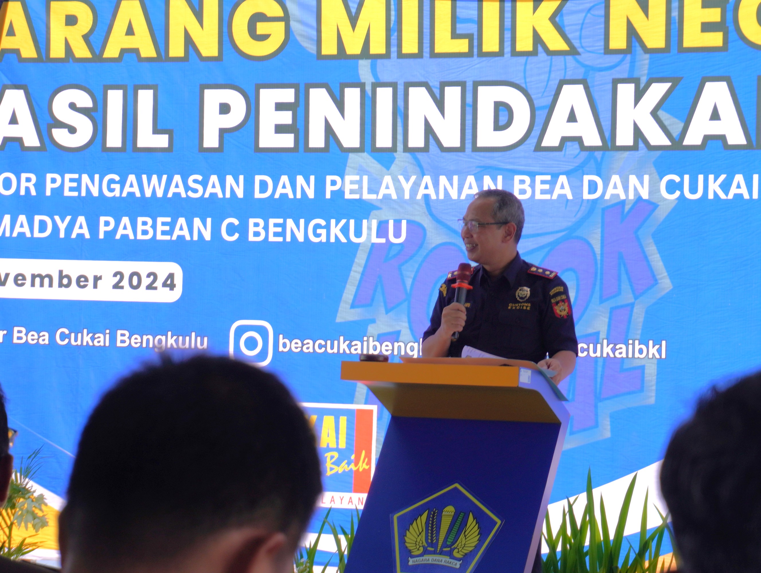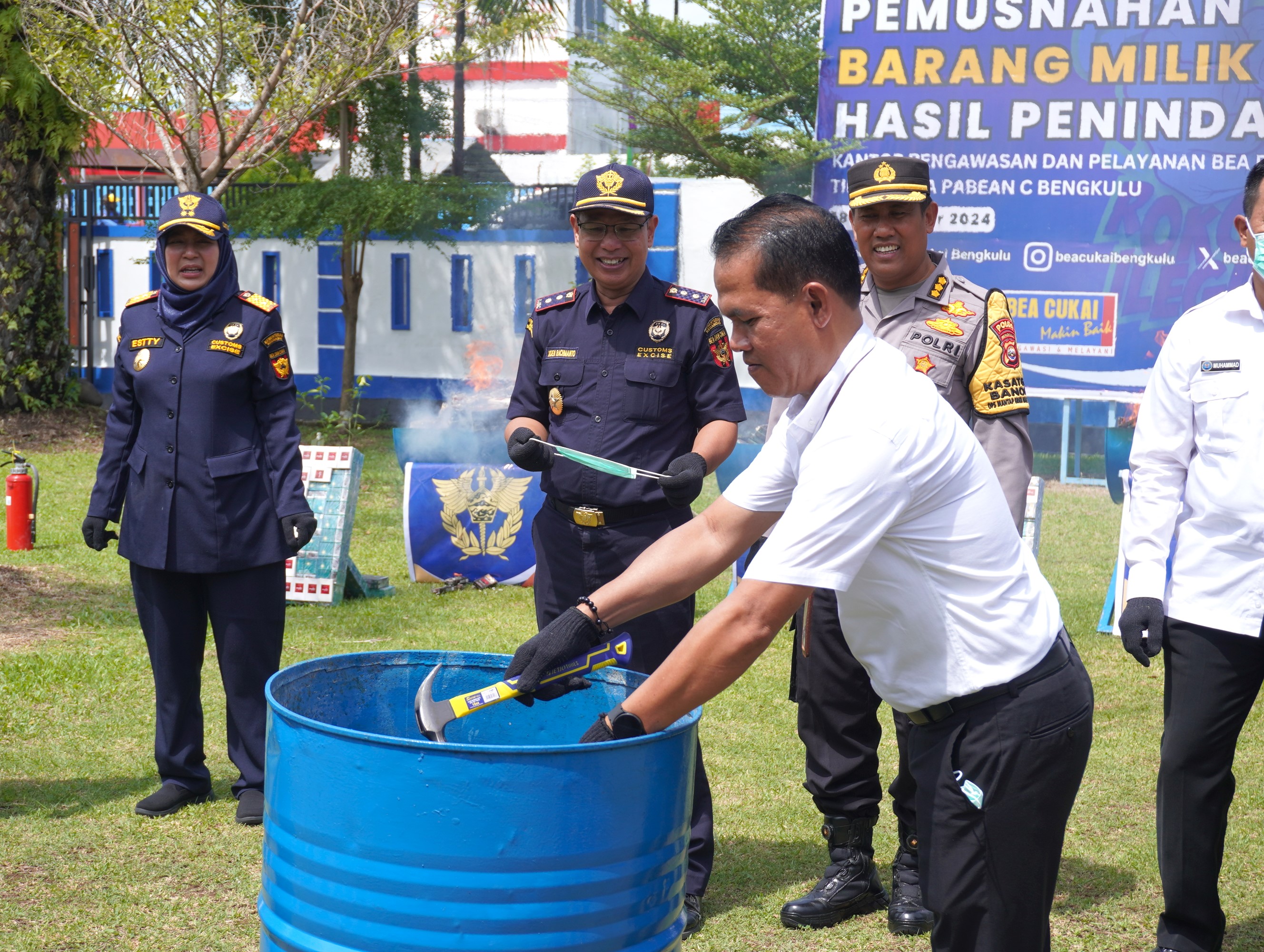 Bengkulu – Senin (18/11/2024), Syaiful Adli, Kepala Seksi Pengelolaan Kekayaan Negara pada Kantor Pelayanan Kekayaan Negara dan Lelang (KPKNL) Bengkulu, menghadiri undangan Kantor Pengawasan dan Pelayanan Bea dan Cukai (KPPBC) Tipe Madya Pabean C Bengkulu dalam kegiatan Pemusnahan Barang yang Menjadi Milik Negara (BMMN) Hasil Penindakan KPPBC Tipe Madya Pabean C Bengkulu.
