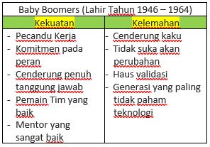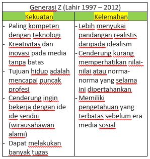 Dengan mengetahui kekuatan dan kelemahan tiap generasi maka kita dapat mengenal Komunikan atau lawan bicara sehingga bisa meminimalisir mispersepsi yang ada.