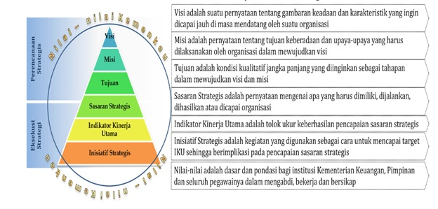 Sebuah organisasi perlu mengarahkan seluruh komponen organisasi agar memiliki gambaran atau cita—cita yang sama melalui visi dan misi. Selanjutnya, penetapan tujuan dirumuskan sebagai tahapan kualitatif untuk mewujudkan visi dan misi tersebut. Setiap tujuan diturunkan menjadi sasaran, yang mendeskripsikan kondisi spesifik dan terukur yang ingin diwujudkan pada periode tertentu.
